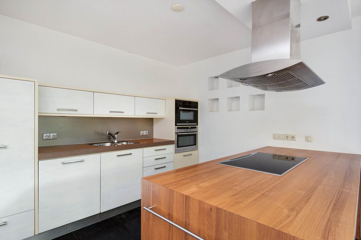 Overdekte entree. Ruime hal met meterkast (6 groepen). Halfhoog betegelde toiletruimte met zwevend closet en fonteintje. Berging/bijkeuken met aansluitpunten voor de wasapparatuur en tuindeur. De lichte zitkamer (6,00 x 4,21 m) met grote raampartijen biedt een prettig uitzicht op de tuin en staat in open verbinding met de moderne keuken (6,00 x 4,26 m). De eetkamer/keuken beschikt over voldoende werkruimte en hoogwaardige keukeninstallatie met de volgende inbouw apparatuur: inductiekookplaat, afzuigkap, oven, combioven, koelkast en vaatwasser. Via de hal is de inpandige garage bereikbaar.