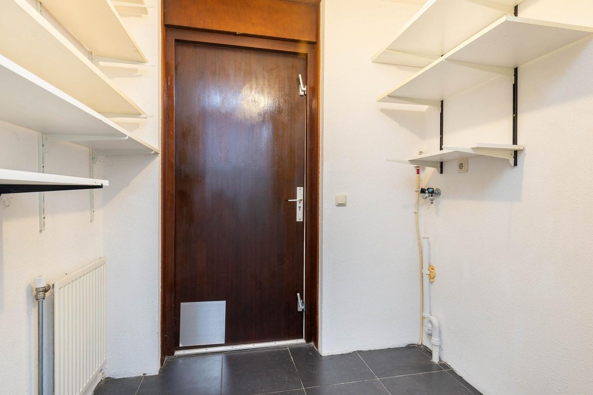 De woning beschikt over een zuidgerichte zijtuin met een royaal terras, gazon en tuinberging. De tuin is geheel besloten en via een poort aan de zijkant toegankelijk.
