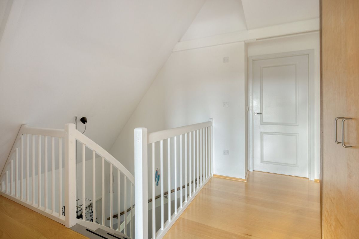 Overloop met een toiletruimte, 2 slaapkamers voorzien van kastruimte en de tweede badkamer voorzien van een wastafel en een ligbad met douche.