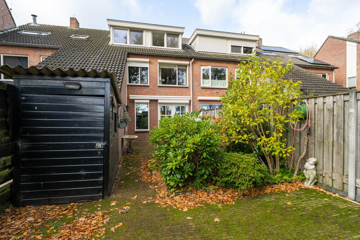 De voortuin is gevarieerd ingedeeld met plantenborders voorzien van vaste beplanting en sierbestrating. De achtertuin is eveneens gevarieerd ingedeeld met vaste beplanting, sierbestrating, terras, berging (vanuit de berging is ook de handige bergzolder bereikbaar middels een losse trap) en een oudere overkapping achterop het perceel (dient gesloopt te worden). Tegen zowel de voor- als achtergevel is een handige waterkraan gemonteerd.