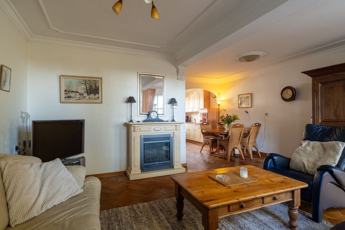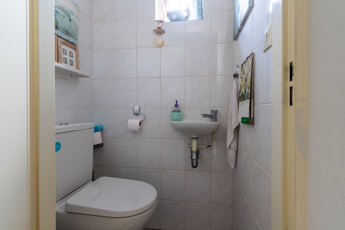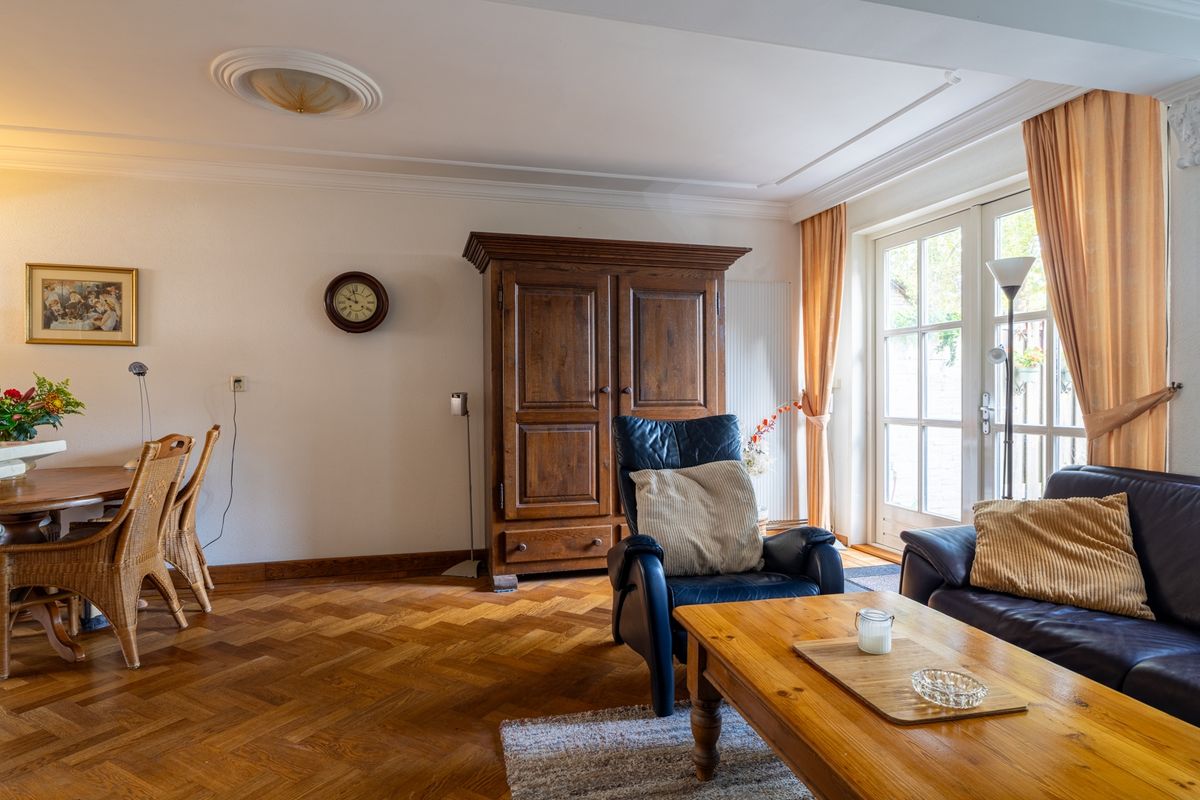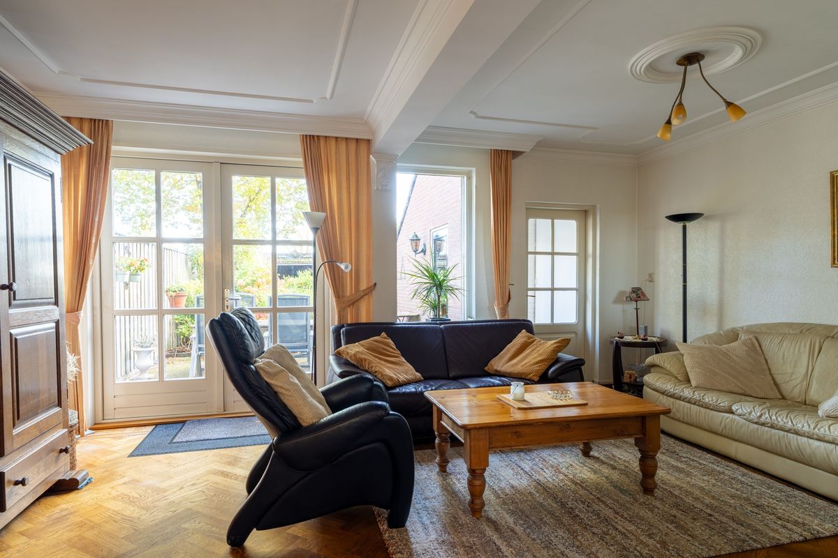Ruime hal met trapopgang naar de verdieping, meterkast en het toilet, aan de voorzijde de openkeuken met een dubbele opstelling voorzien van inbouwapparatuur, ruime woonkamer met een gezellige elektrische haard en openslaande tuindeuren, tevens het tochtportaal met extra loopdeur naar het terras met en achtertuin.