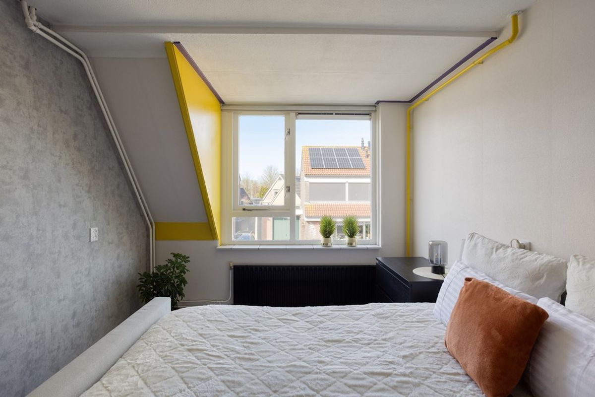 De eerste verdieping bestaat uit drie slaapkamers en een badkamer. De grote slaapkamer aan de voorzijde is vergroot met een dakkapel. Op de vloer ligt een nette donkere laminaattegel. De beide andere kamers zijn wat kleiner van formaat, maar het zijn nog steeds mooie kamers met beide een groot Velux dakraam (HR++ beglazing 2025!) en een verduisterend rolgordijn. Het laminaat heeft in beide kamers een beukenprint.