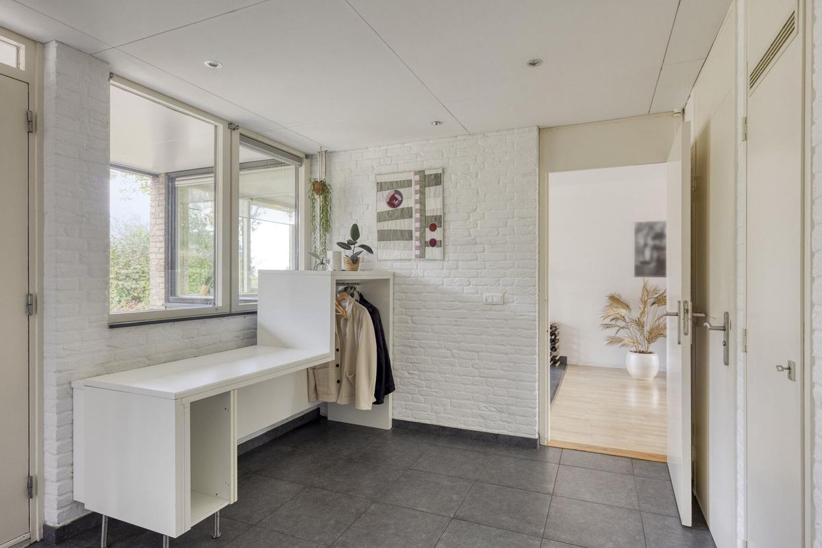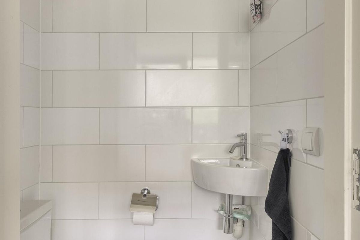 * Overdekte entree/hal voorzien van plavuizen vloer, meterkast, trapopgang en licht betegeld toilet met fonteintje.