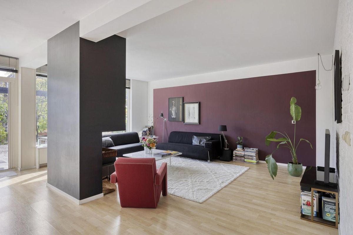 * Riante living van ca. 60 m² bestaande uit een woonkamer en open keuken. De woonkamer is voorzien van laminaat vloer, sfeervolle openhaard en deur naar de zonnige achtertuin. Door de grote glazen achterpui is hier veel lichtinval en een prachtig zicht op de tuin!