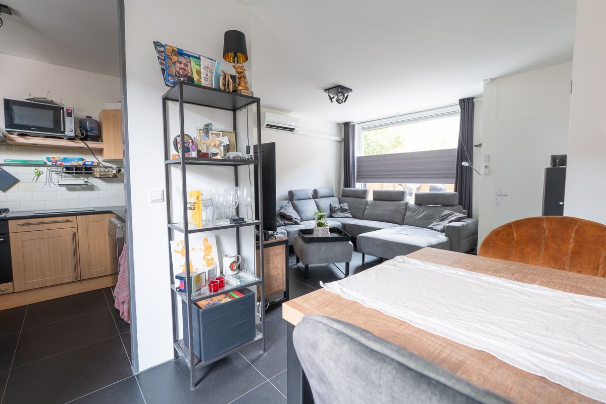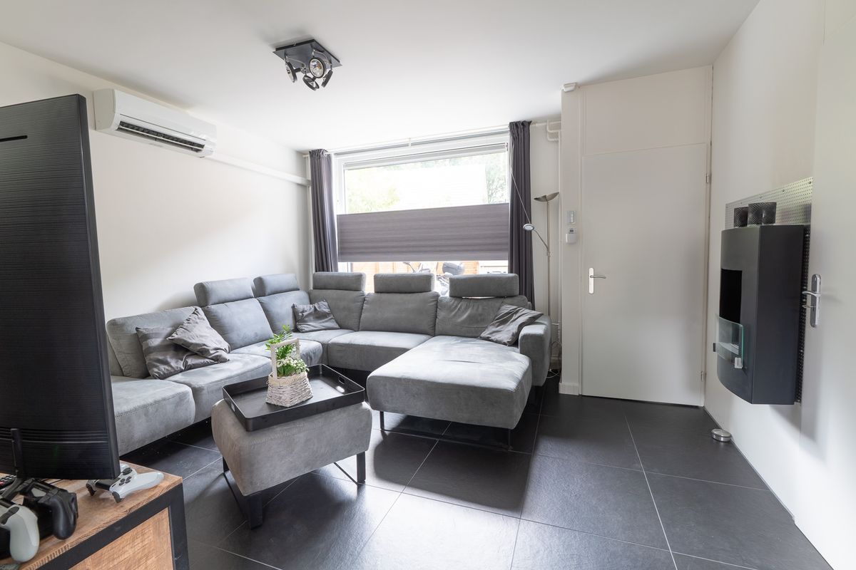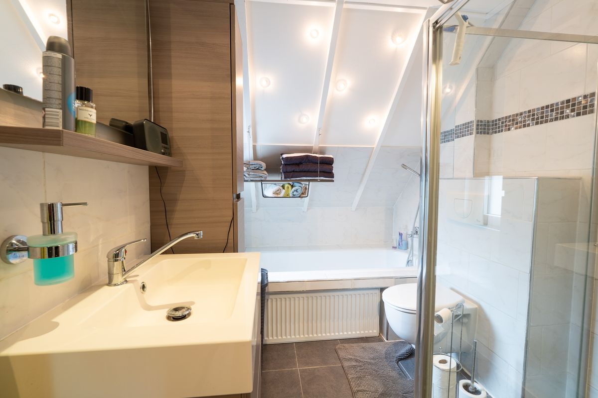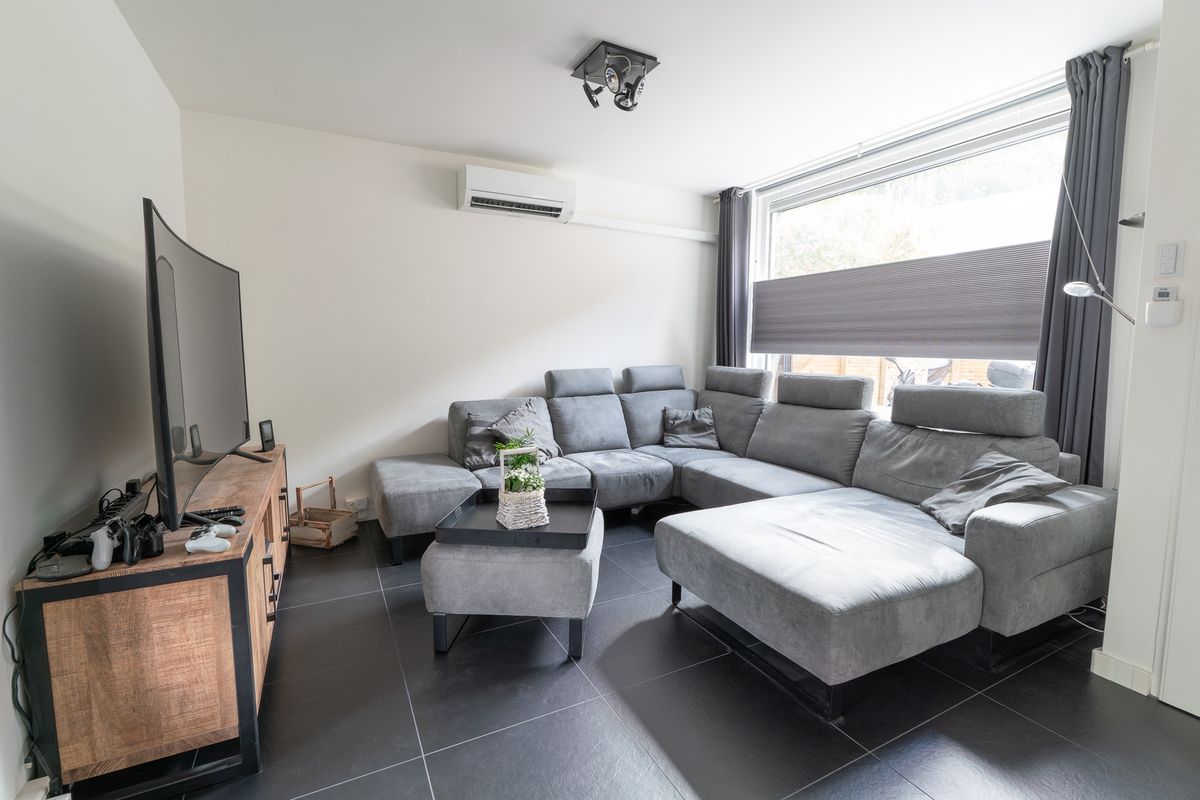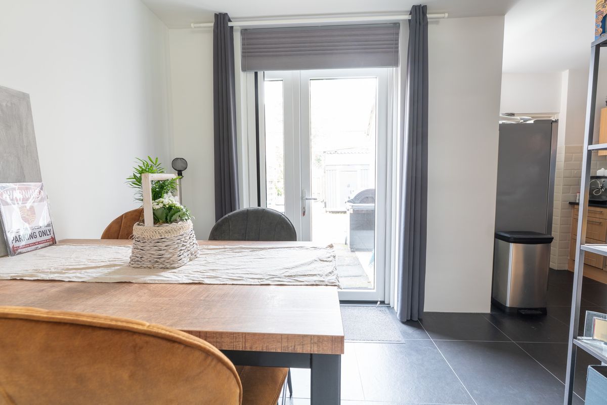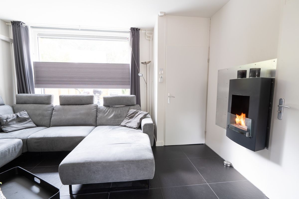 De woonkamer is het hart van het huis en biedt een oase van comfort. Het zitgedeelte is uitgerust met elektrische vloerverwarming, ideaal voor die koude dagen. Daarnaast zorgt een fraaie, aan de wand gemonteerde ethanolhaard voor extra sfeer en warmte. Voor de warmere maanden is er een efficiënte airco-unit die zowel kan koelen als verwarmen. Slimme elektra plinten in het zitgedeelte zorgen voor extra wandcontactdozen en de mogelijkheid om kabels netjes weg te werken. Dankzij de op maat gemaakte, plissé top-down/bottom-up gordijnen geniet u van optimale privacy en lichtregulering. Vanuit de woonkamer leidt een tuindeur met plissé hor direct naar de achtertuin, waardoor binnen en buiten naadloos in elkaar overlopen. Het toilet op de begane grond is eveneens recent gemoderniseerd met een nieuw hangtoilet en fontein.