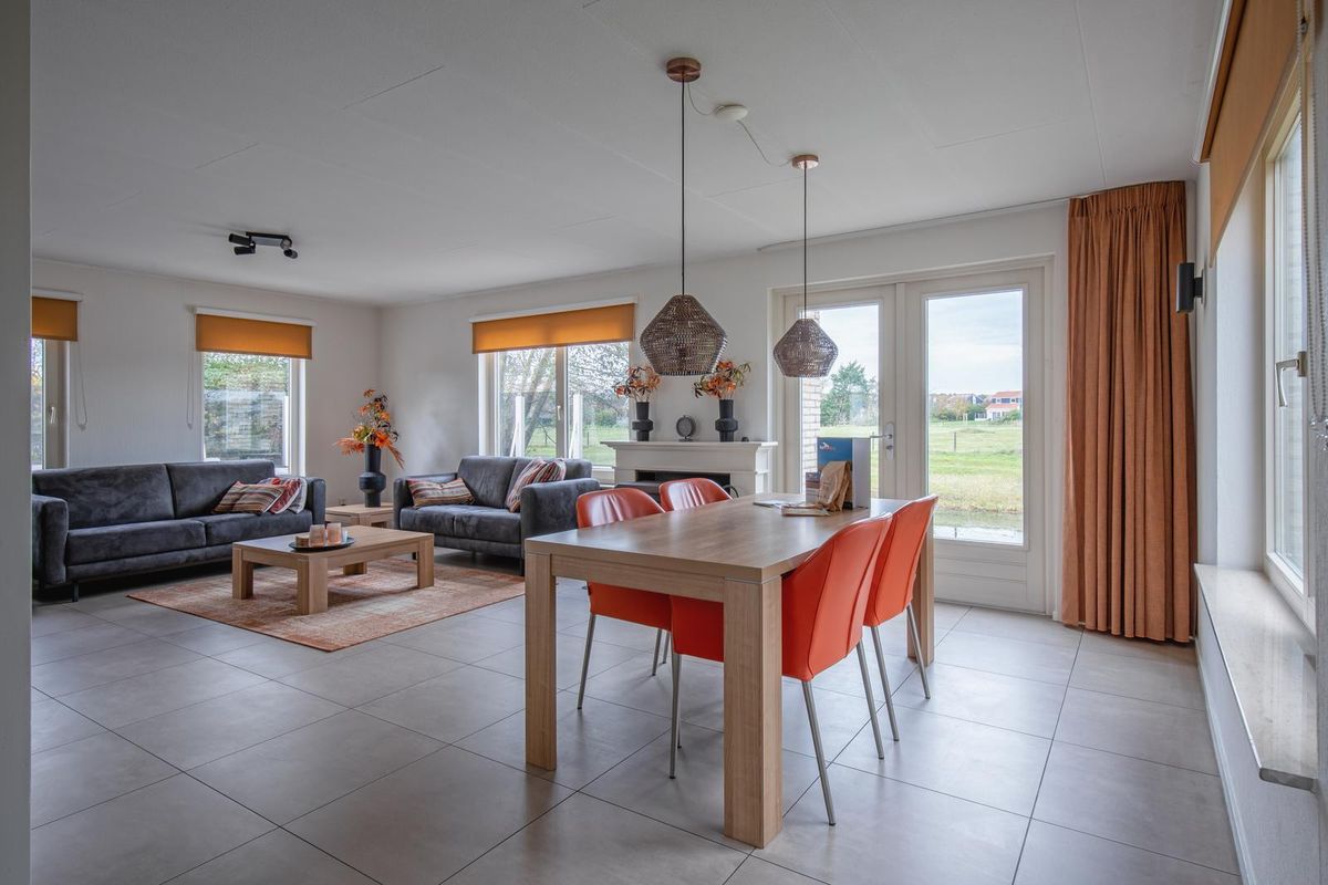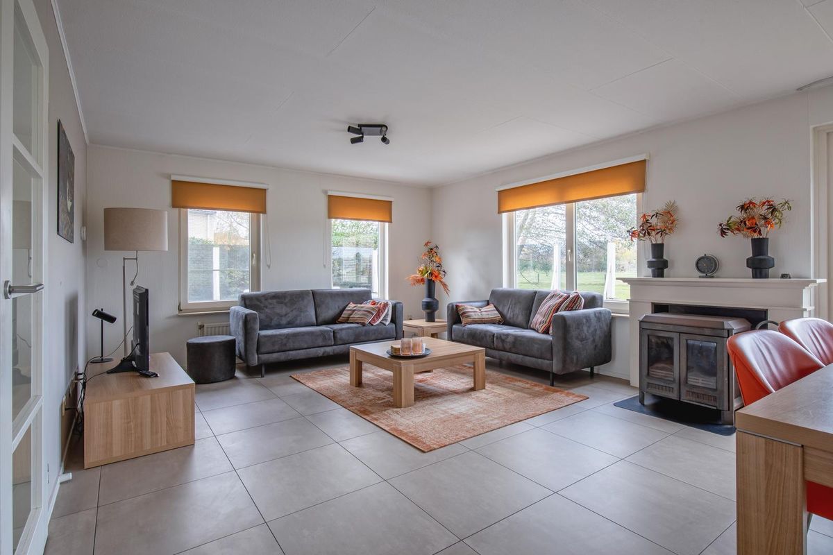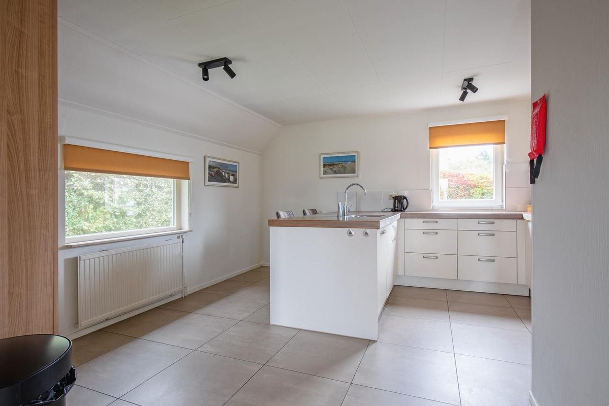 Indeling: entree in hal met toegang tot de woonkamer, royale keuken, toiletruimte en bijkeuken. De woonkamer is voorzien van een houtkachel en openslaande deuren naar het terras en tuin. Vanaf hier heeft u een prachtig vrij uitzicht, een geweldige plek voor de rustzoekers en natuurgenieters. Door de vele raampartijen geniet u de gehele dag van de zon in de woonkamer.