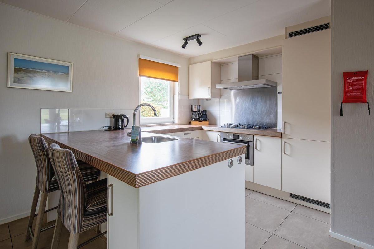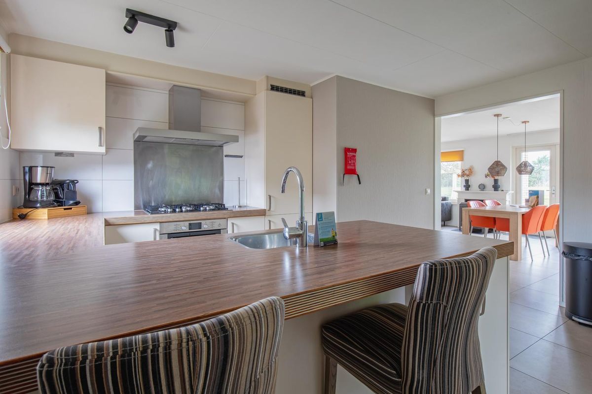 De ruime keuken met bar is uitgevoerd met spoelbak, 5-pits gaskookplaat, afzuigkap, vaatwasser, combi-oven en koel- vriescombinatie.