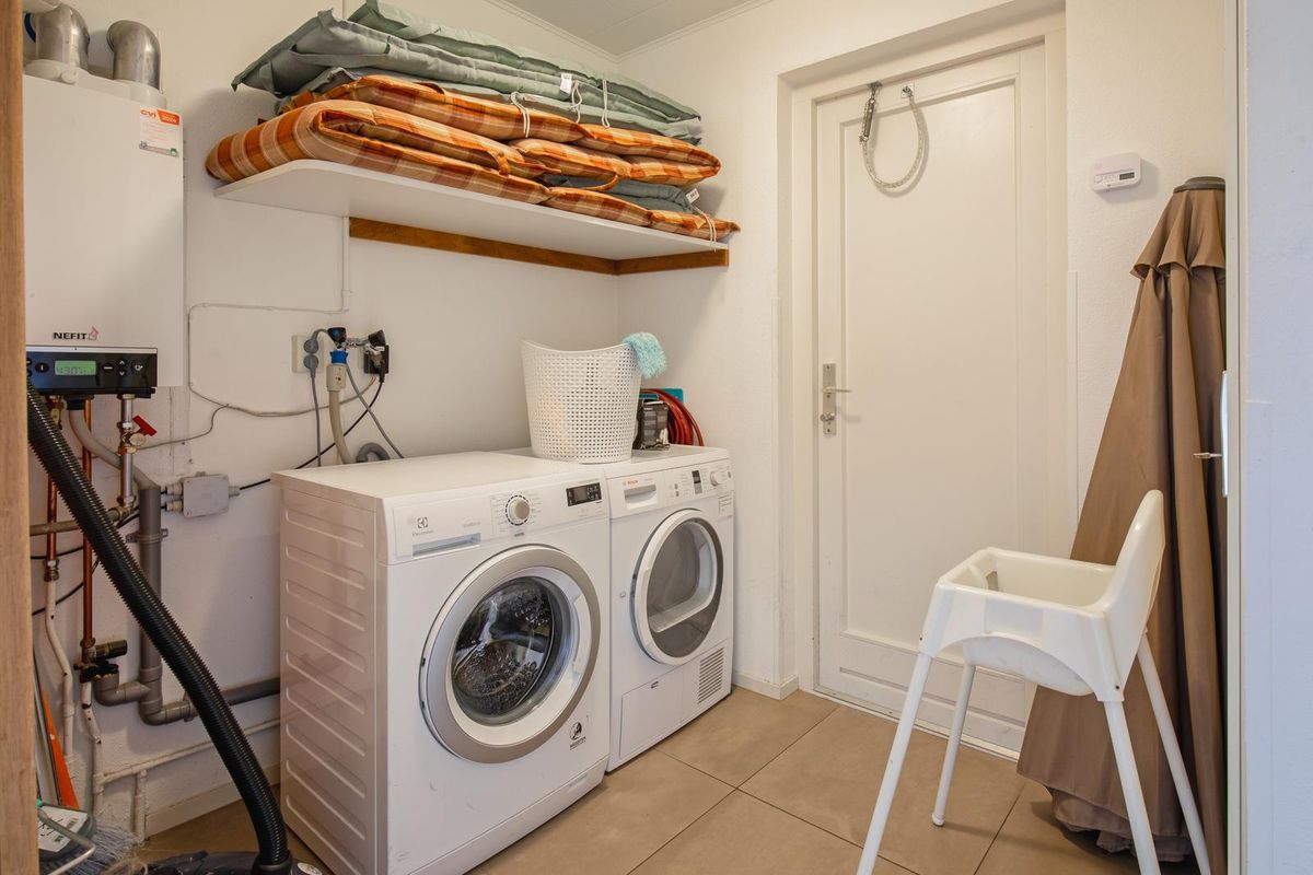In de entree bevindt zich de toiletruimte, voorzien van een vrijdragend toilet en fonteintje. De bijkeuken biedt plaats voor de CV-ketel en heeft aansluitingen voor de wasmachine en droger.