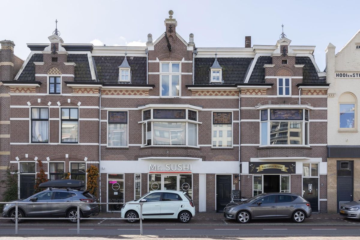 Naast Mr. Sushi is de gezamenlijke entree van de appartementen op huisnummer 20a tot en met 20f. Aan de buitenzijde zijn de brievenbussen en het bellentableau met intercom. Eenmaal binnen ga je met de trap naar de tweede verdieping, richting de voordeur van dit fraaie appartement.