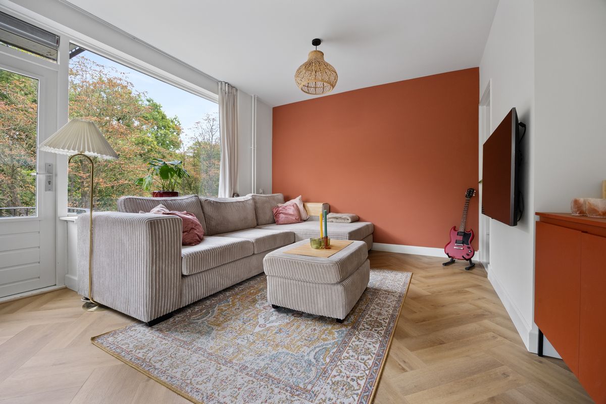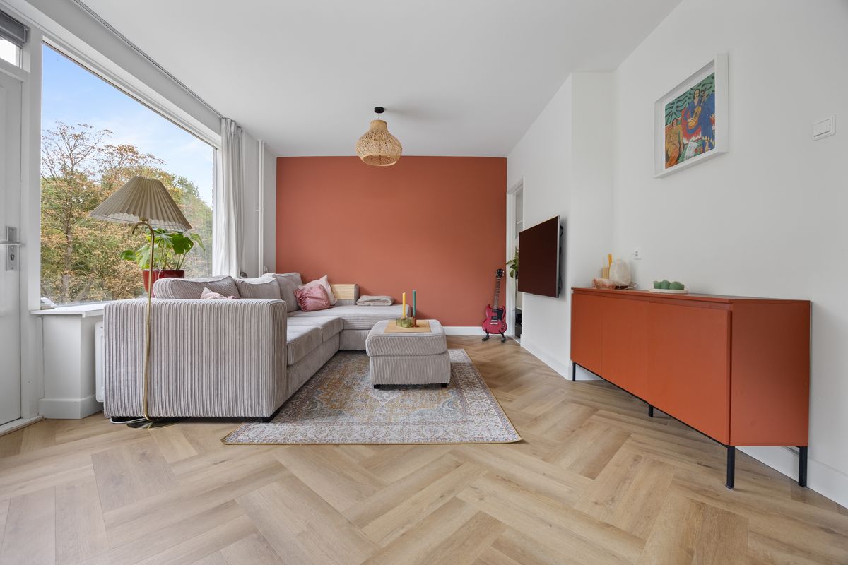 Bij binnenkomst via de gezamenlijke entree kom je in de hal die toegang geeft tot de verschillende vertrekken. De woonkamer is royaal en dankzij de grote raampartijen heerlijk licht. Er is voldoende ruimte voor een comfortabele zithoek en een eettafel. Vanuit de woonkamer stap je het zonnige balkon op, waar je tot in de avond kunt genieten van de zon.