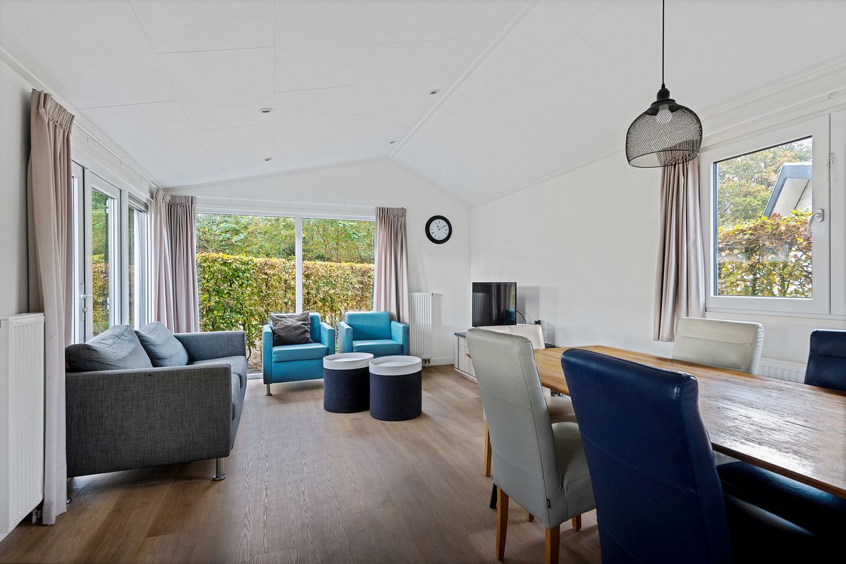 Ruime woonkamer met veel lichtinval en openslaande deuren naar het terras