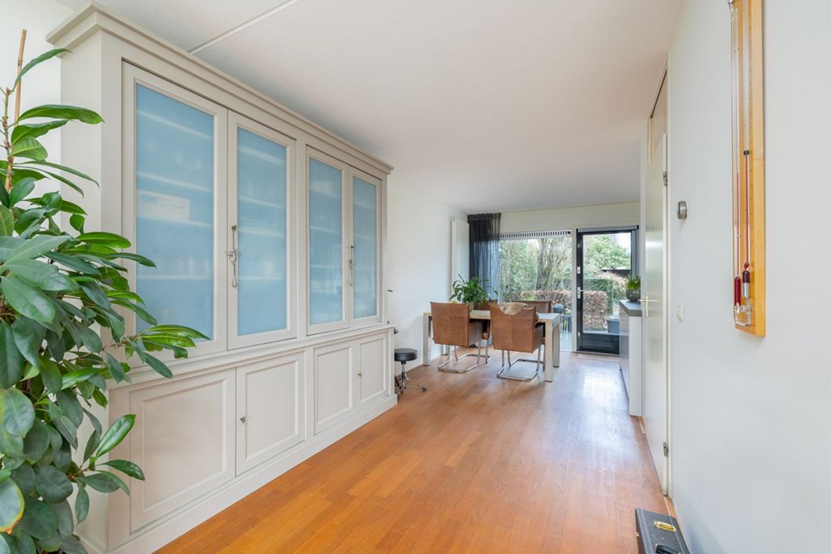 Achter deze ruimte bevindt zich de ruime berging met praktische inbouwkasten. Extra comfortabel is de eigen ingang naar de praktijkruimte, waardoor wonen en werken hier volledig van elkaar gescheiden kunnen worden. Een zeldzame combinatie die flexibiliteit en privacy perfect samenbrengt..