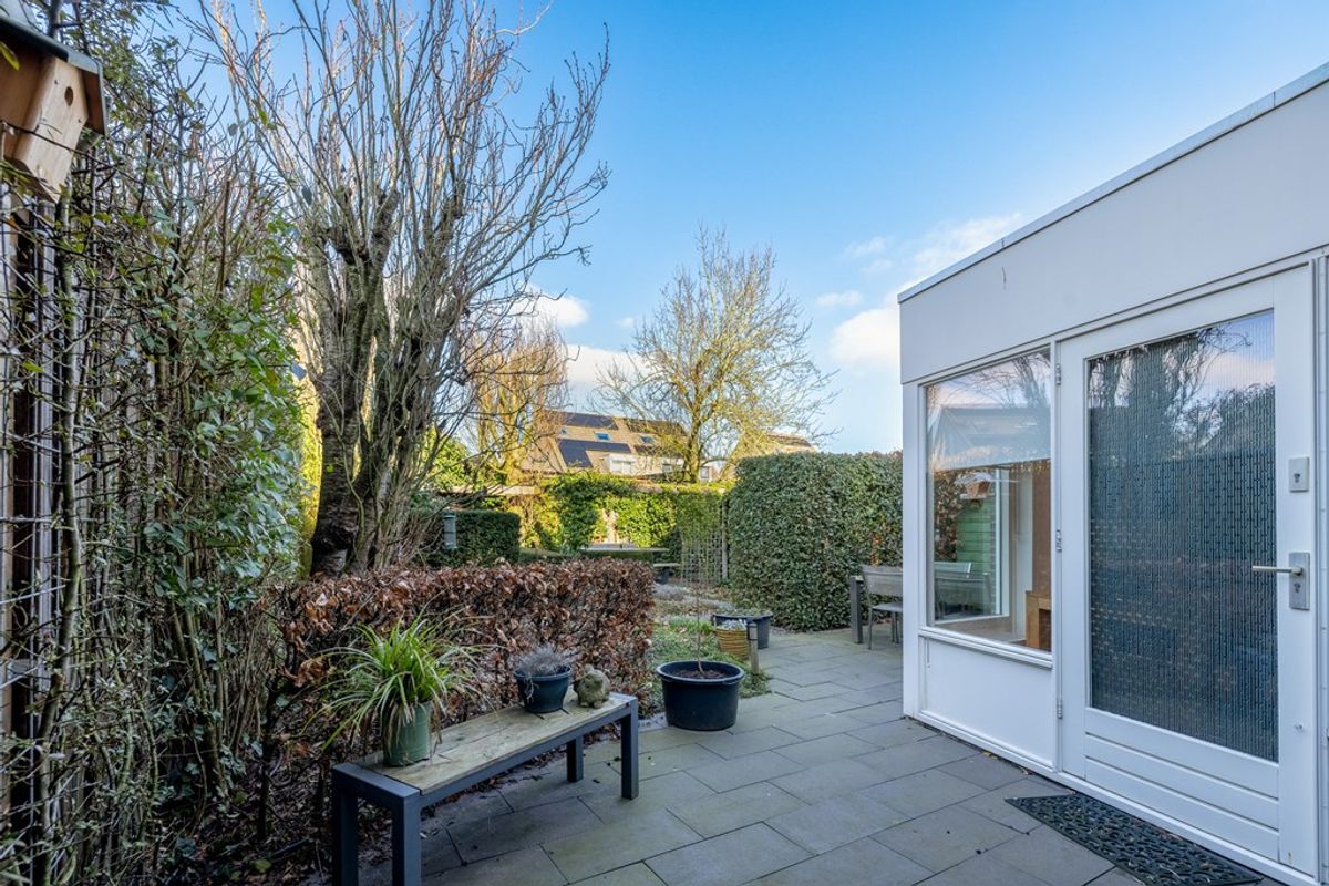 De tuin is fraai ingericht met meerdere terrassen, waardoor er altijd een plek is in zon of schaduw. De combinatie van groen en hoogwaardige betegeling zorgt voor een stijlvolle en evenwichtige uitstraling. Dankzij de slimme indeling en groene erfafscheidingen geniet u hier van volop privacy.