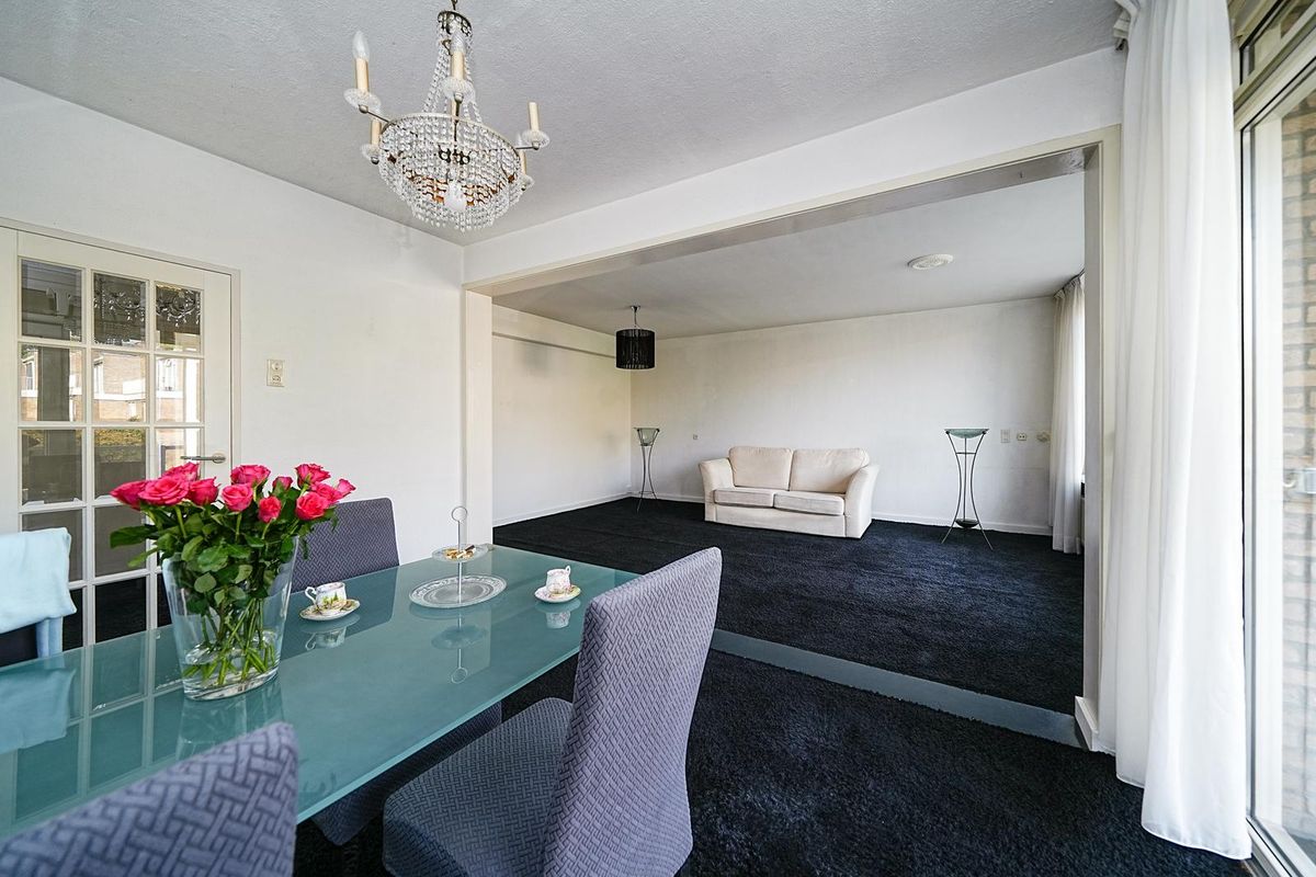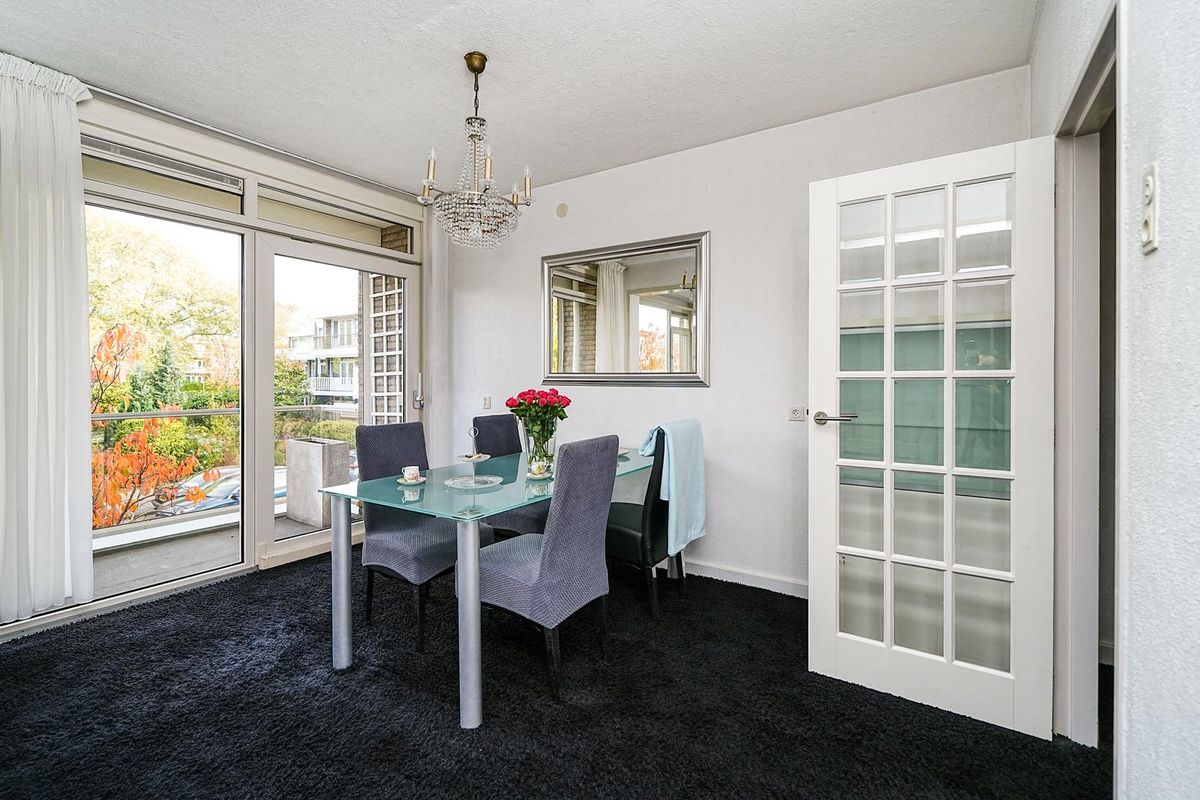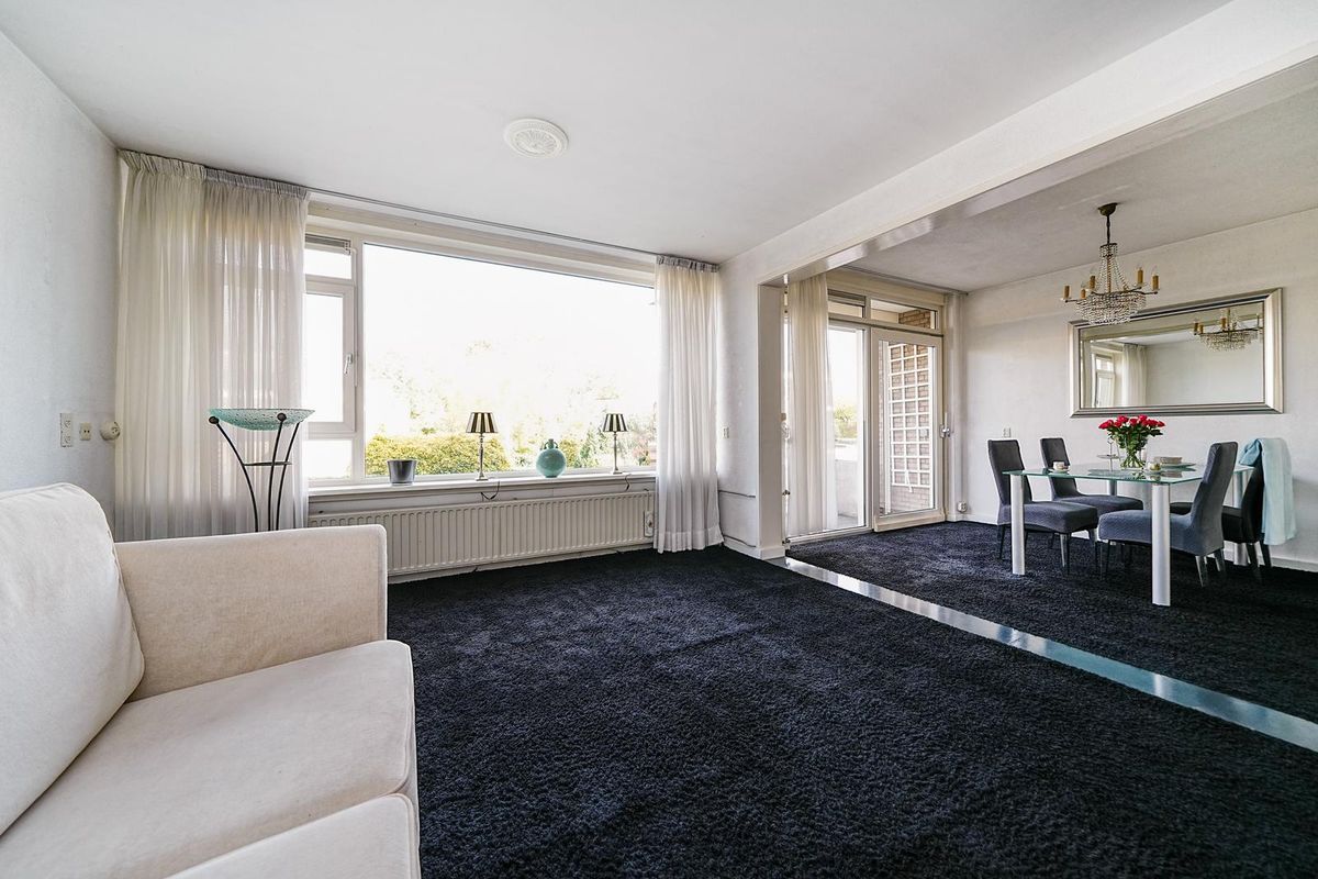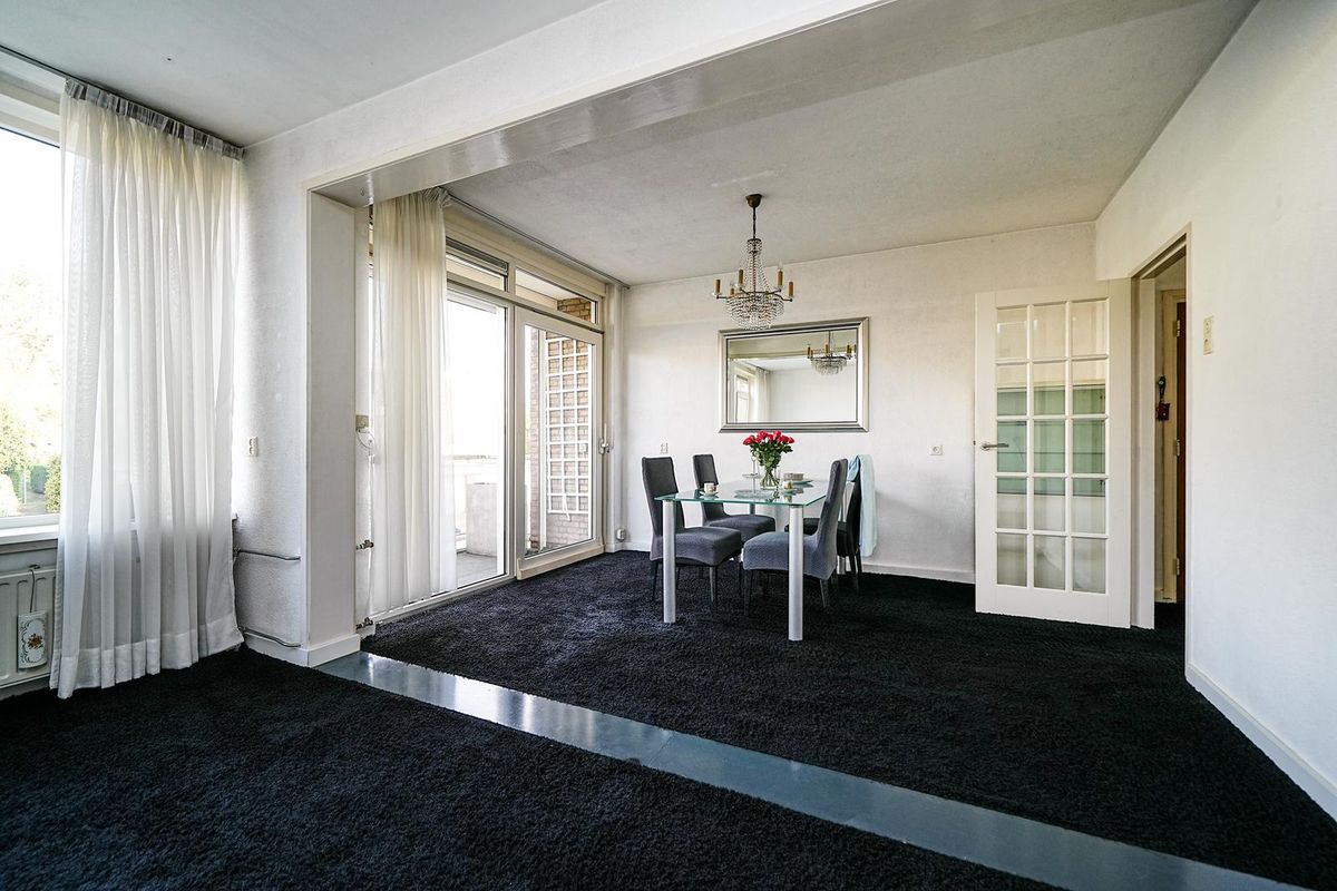 * De woonkamer is aan de voorzijde gelegen met toegang tot de eetkamer. De woonkamer en eetkamer is voorzien van vloerbedekking. De eetkamer geeft toegang tot het balkon aan voorzijde.