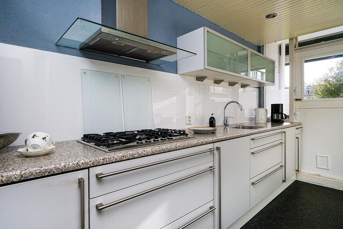 * De keuken is gelegen aan de achterzijde en geeft eveneens toegang tot het balkon. De keuken is voorzien van een gaskookplaat, afzuigkap, vriezer, koelkast en de wasmachineaansluiting.