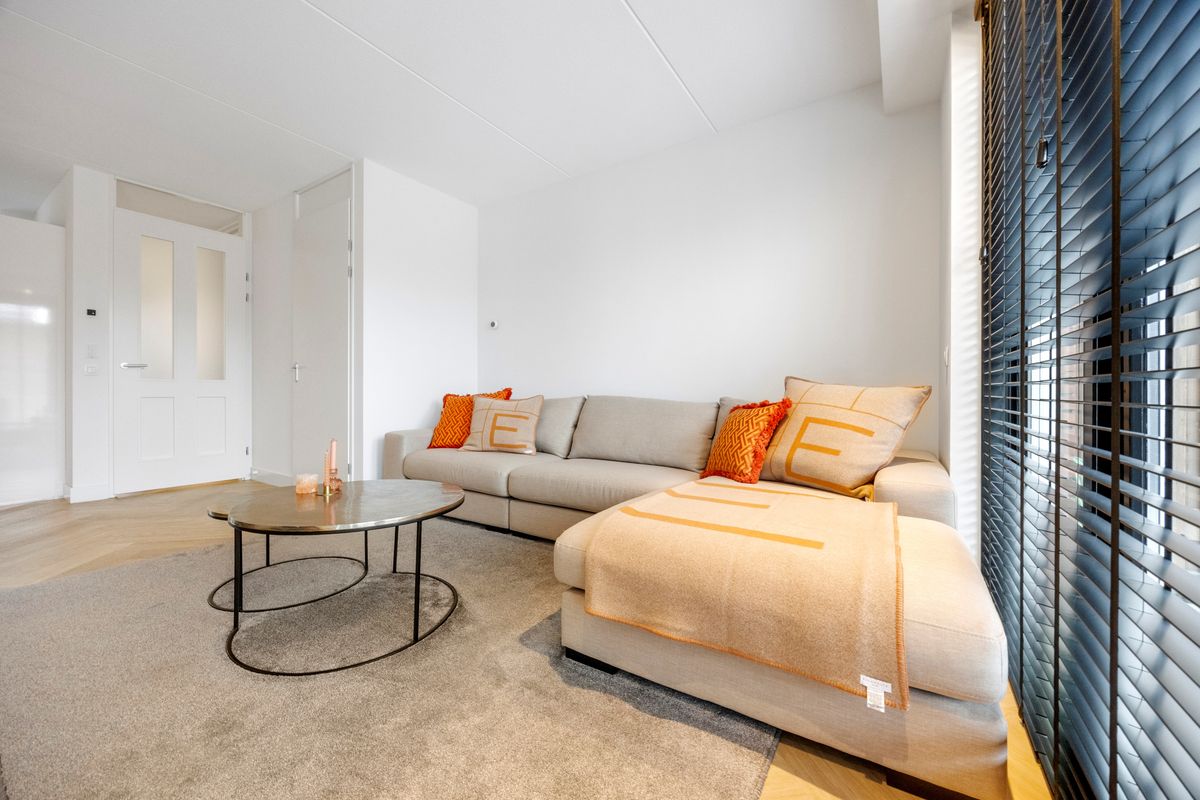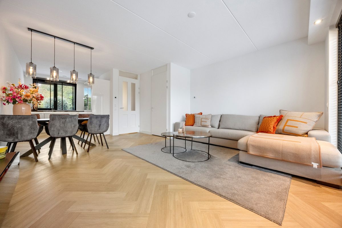 Het zitgedeelte is ruim opgezet en biedt plaats aan een royale zithoek met een grote bank en een tv-opstelling. Dankzij de open verbinding met de keuken is de woning perfect voor gezellige etentjes met familie en vrienden, je blijft daarbij eenvoudig in contact met je gasten terwijl je in de keuken bezig bent. De dubbel openslaande deuren geven toegang tot de achtertuin. In de zomer zet je ze wijd open en ontstaat er een natuurlijke overgang tussen binnen en buiten.