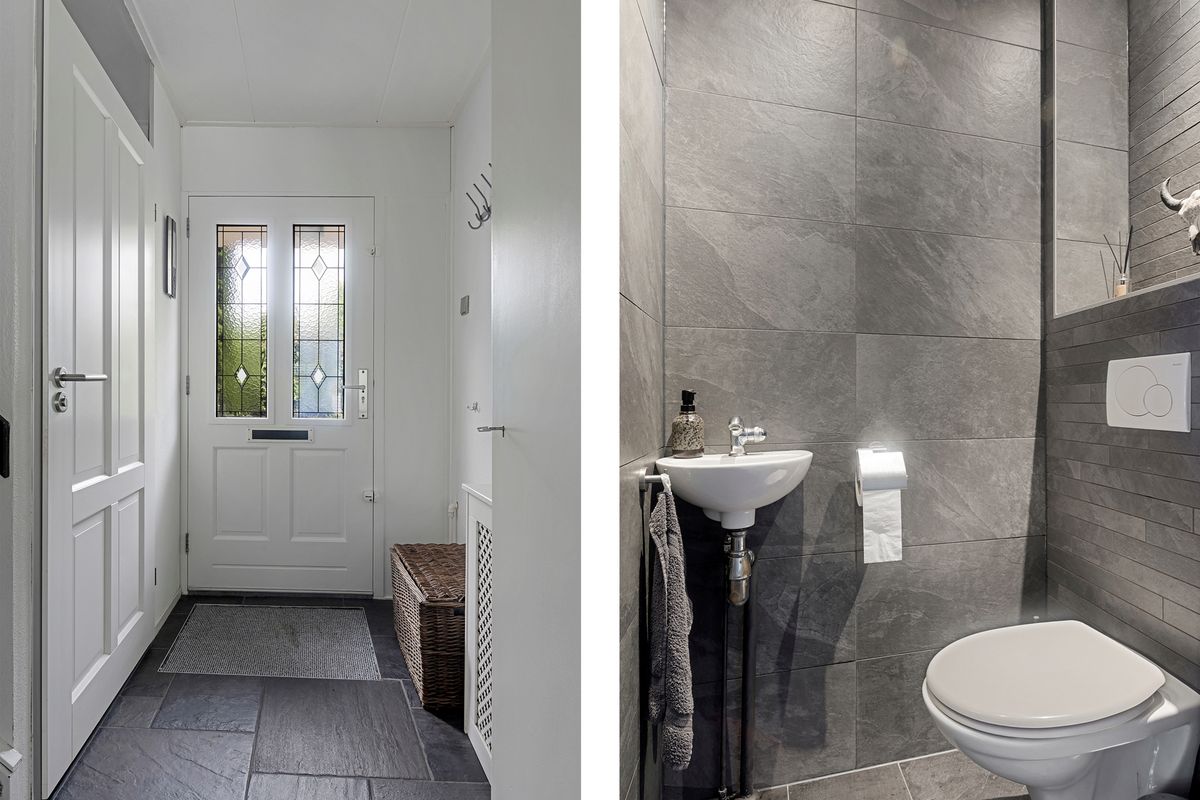 Bij binnenkomst tref je de entree/hal met toilet (wandcloset met fontein, volledig betegeld). De royale keuken is aan de voorzijde van de woning gelegen en beschikt over diverse inbouwapparatuur zoals een vaatwasser, koelkast, 5-pits gaskookplaat en een spoelbak. Het schiereiland maakt deze keuken een heerlijke plek om te koken én gezellig samen te komen.