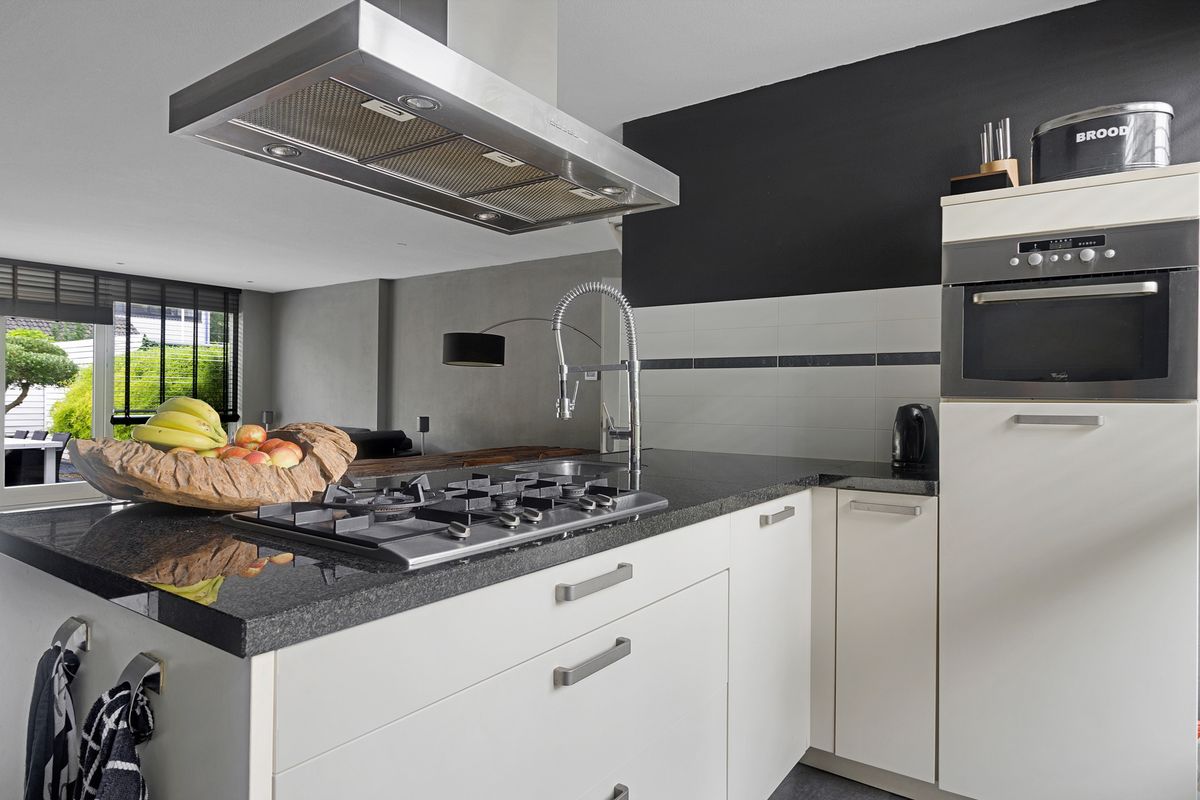 - Keuken met schiereiland en diverse inbouwapparatuur;