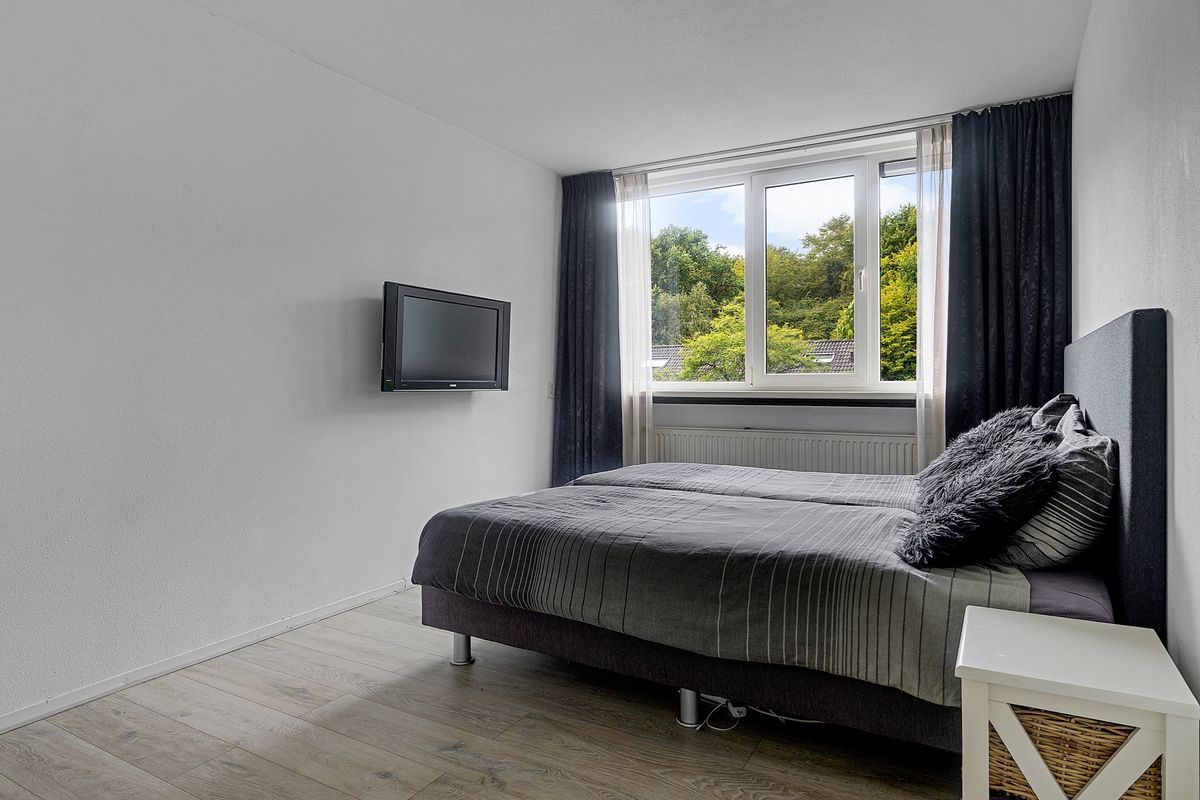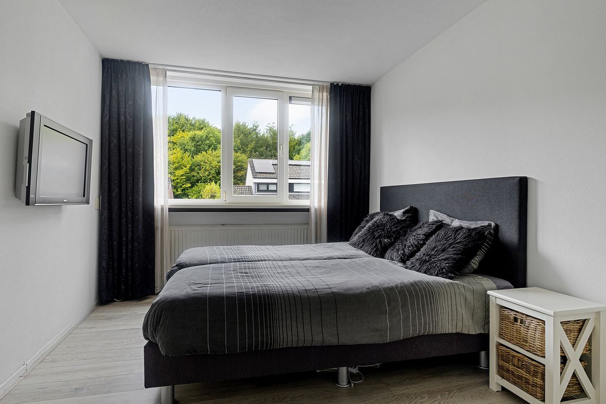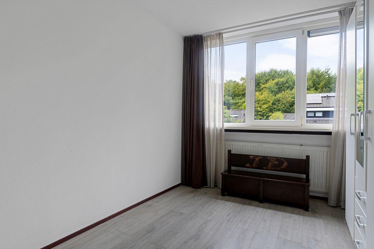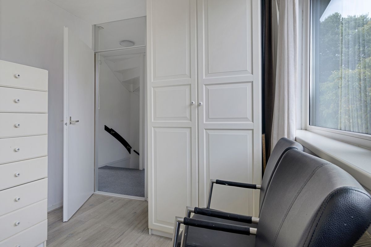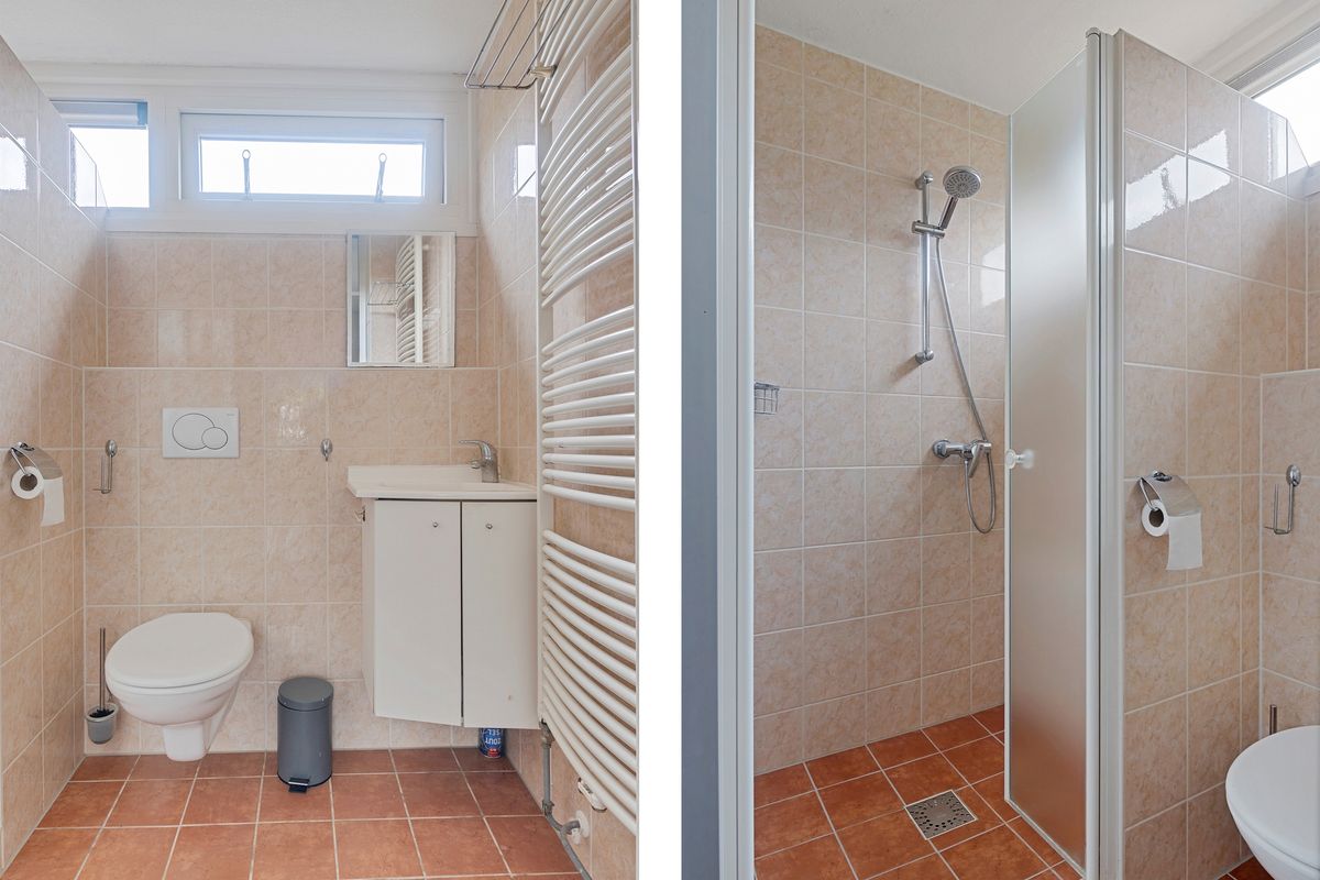 Op de eerste verdieping bevinden zich drie goed bemeten slaapkamers, zoals je die kent van de ruime woningen uit de jaren ’70 en ’80. De badkamer, gelegen aan de voorzijde, is voorzien van een douche, wastafel met meubel en een tweede toilet.