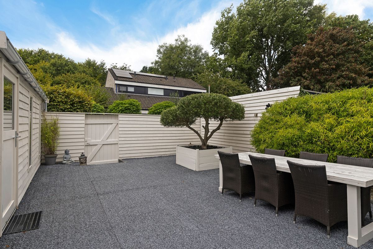 De tuin is onderhoudsvriendelijk aangelegd met bestrating en grijs kunstgras. Via de achterom loop je zó het Risdammerhout in – ideaal voor een wandeling met de hond of een sportieve ronde. De twee extra bergingen/praktijkruimtes op het aangrenzende perceel zijn volledig geïsoleerd en multifunctioneel te gebruiken.