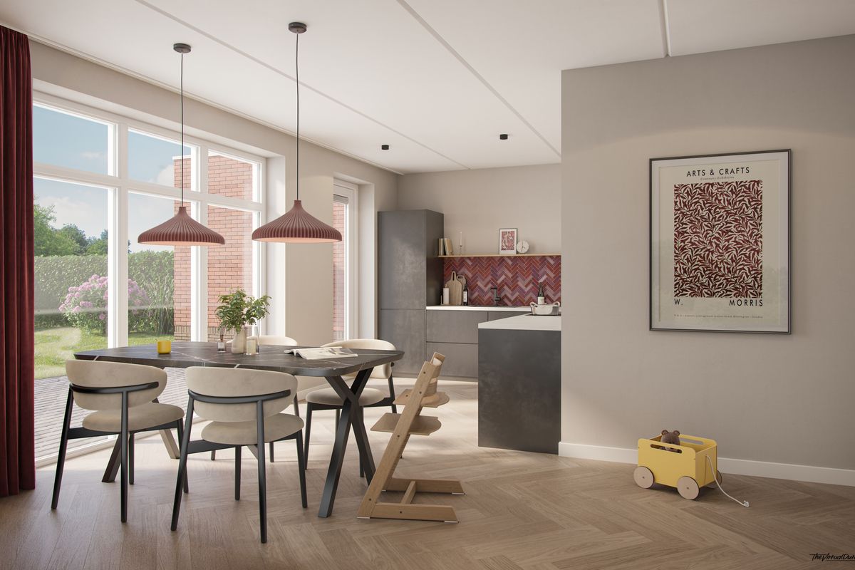De uitnodigende woonkamer aan de straatzijde wordt dankzij grote raampartijen aangenaam verlicht. Aan de achterzijde bevindt zich de open keuken, die volledig naar eigen wens kan worden ingericht. Vanuit de keuken stapt u zo de tuin in op het noordwesten, een fijne plek voor kinderen om te spelen en voor volwassenen om te ontspannen. De aangebouwde stenen berging zorgt voor extra bergruimte, bijvoorbeeld voor fietsen of tuinbenodigdheden. Bovendien beschikt u over twee privéparkeerplaatsen op eigen terrein.