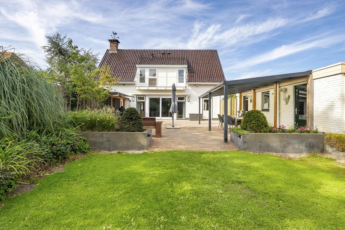 Op een kavel van 1.532 m² ligt deze woning met voortuin, brede oprit en riante, verrassend diepe achtertuin. De op het zuidoosten gerichte achtertuin heeft een heerlijk terras – met overkapping –, verbonden met een groot gazon. Privacy, ruimte en rust; een fijne plek voor kinderen om te spelen en/of volwassenen om tot rust te komen.