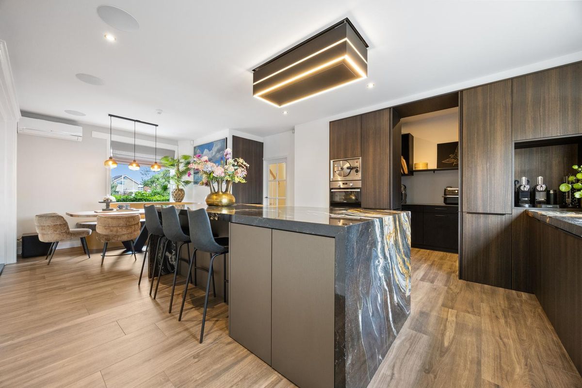Met een woonoppervlakte van 353 m² beschikt deze villa over een zeer grote woonkamer met houtkachel, luxe woonkeuken met eiland en pantry, kantoorkamer, bijkeuken, 4 slaapkamers, badkamer, zolder en zeer grote, multifunctionele kelder. Daarnaast is de dubbele garage uitgebouwd, vorstvrij en voor meerdere doeleinden geschikt. De woning heeft 48 zonnepanelen en een warmtepomp (energielabel A).