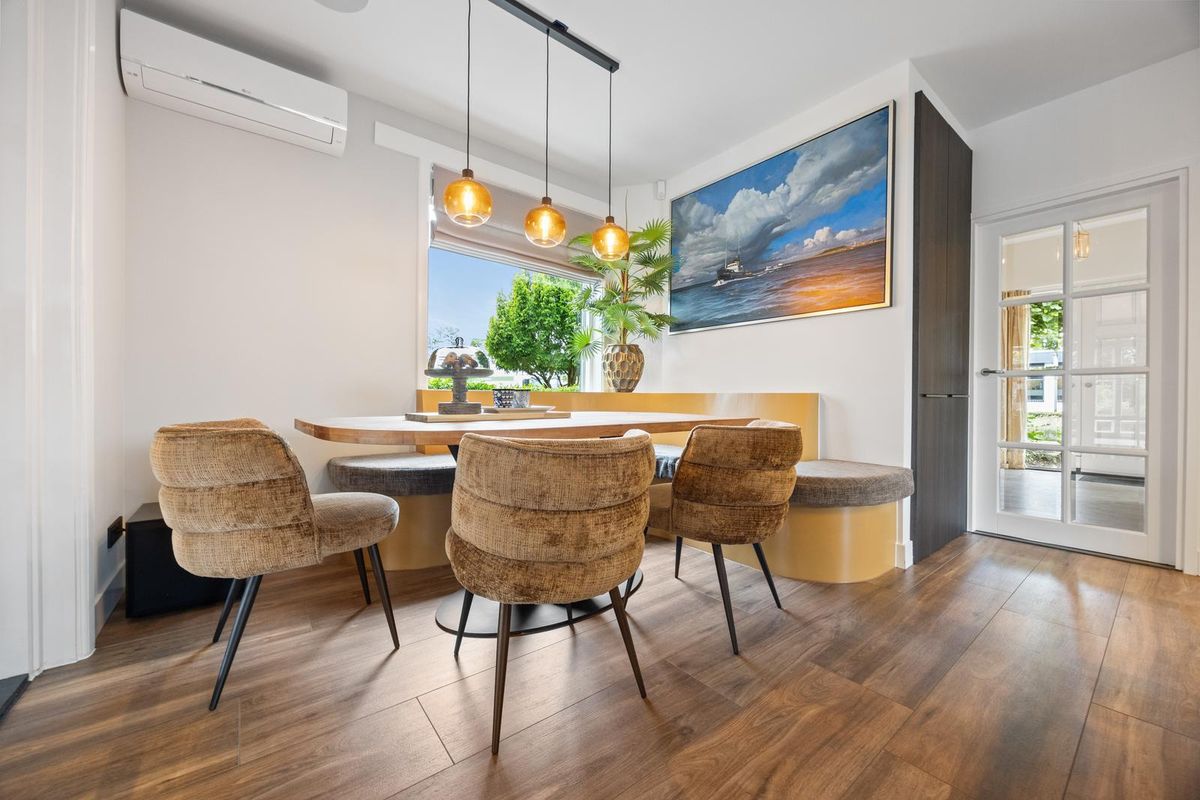 Gebouwd in 1947, gemoderniseerd en voorzien van technisch en modern comfort: domotica: middels app bedienbare verlichting, elektrisch bedienbare raamdecoratie in de woonkamer, in plafond geïntegreerde speakerinstallatie, airconditioning in alle (slaap)kamers/woonruimten en in de garage annex berging, alarminstallatie, thuisaccu’s/batterijensysteem (Solarwatt), 48 zonnepanelen, warm water middels warmtepomp met 1 buffervat (200 l. zolder), waterontharder, glasvezelaansluiting. Keramisch parket in de keuken en woonkamer, (op een enkel raam na) dubbel glas, dakisolatie (1975), geglazuurde dakpannen, zeer luxe woonkeuken met dito pantry. Nieuwe schuifpui (kunststof dubbel glas) in pui van woonkamer. Garage en berging zijn vorstvrij: deels voorzien van vloerisolatie en geheel voorzien van dakisolatie. Terras van gebakken klinkers. Elektrisch bedienbaar uitvalzonnescherm tegen achtergevel.