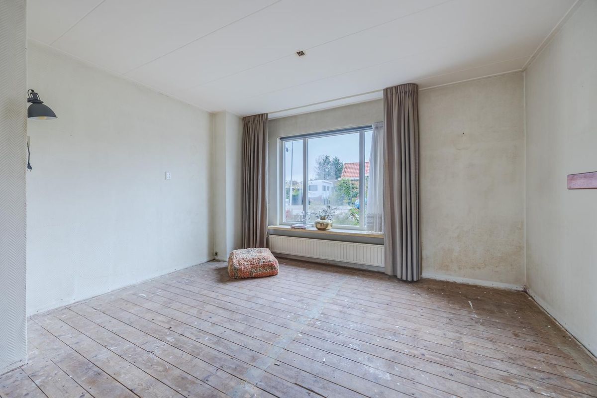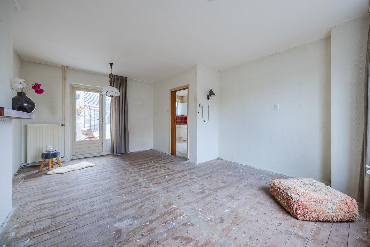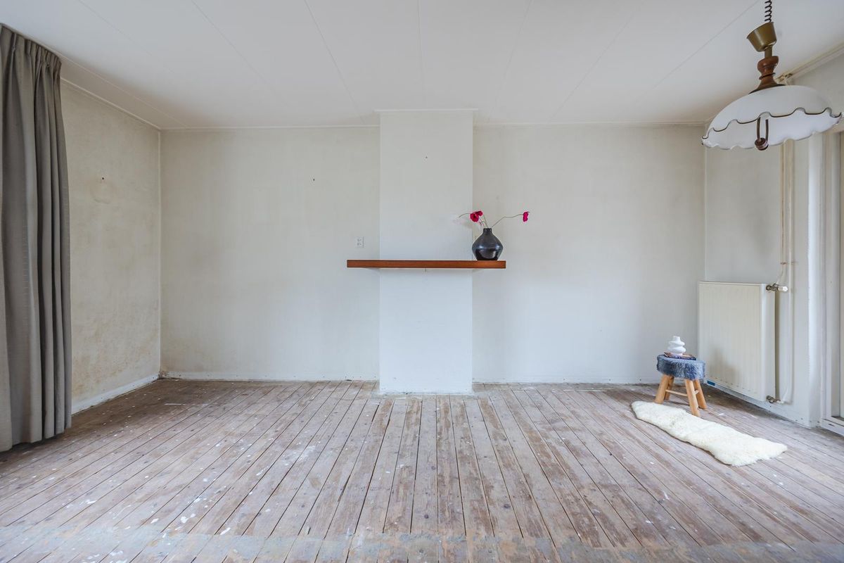 De ruime woonkamer is voorzien van een houten vloer en sfeervolle schouw. Vanuit de woonkamer heeft u toegang tot de achtertuin.