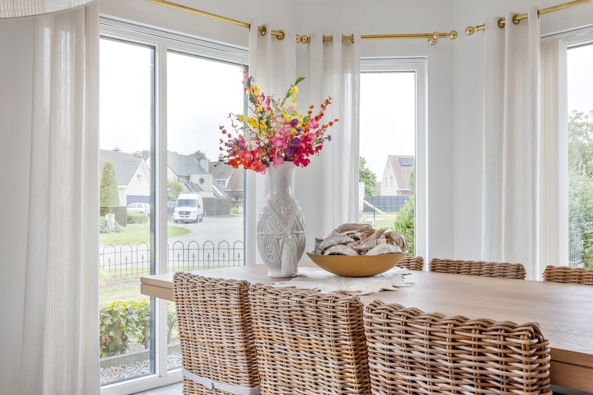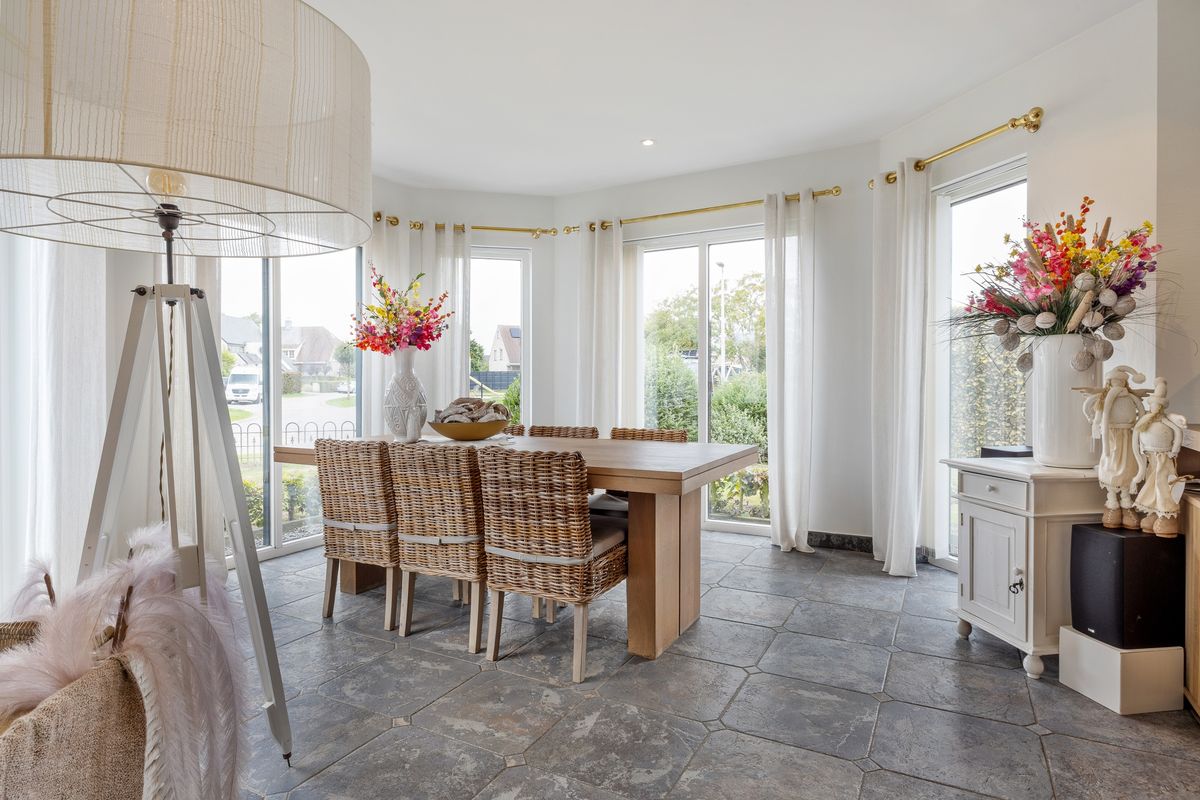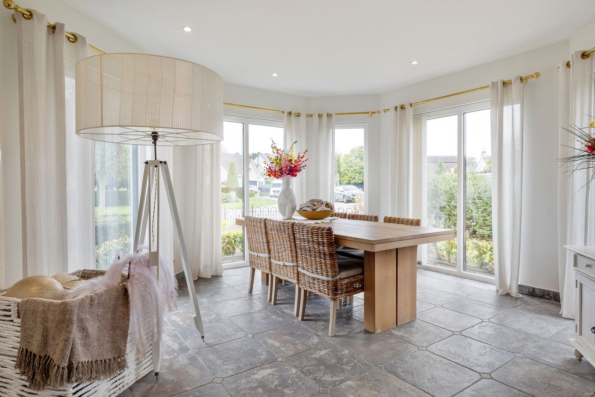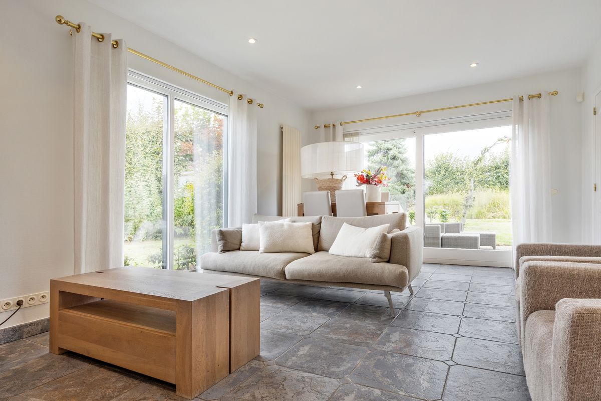 De woonkamer is voorzien van een tegelvloer, glad gestucte wanden en plafonds, inbouwverlichting, een airco en een schuifpui voor direct toegang tot het terras. Vanwege de grote raampartijen is dit een aangename leefruimte met veel daglichttoetreding.