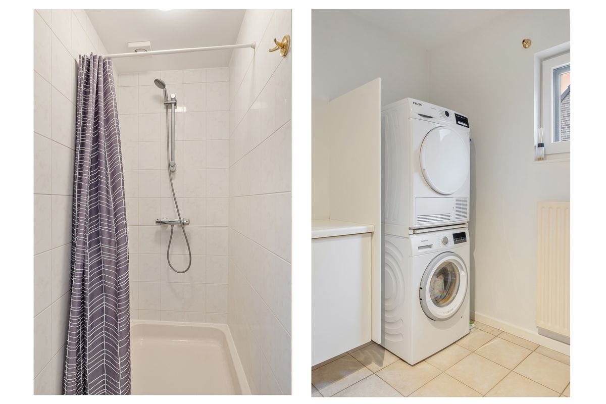 De bijkeuken is voorzien van een tegelvloer, een werkblad, aansluitingen voor de wasmachine en droogkast en een doucheruimte.