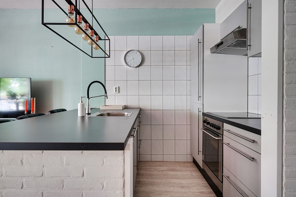 De woonkamer en eethoek is volledig ingericht en voorzien van smart tv, internet en strakke wand- en plafondafwerking. Tevens geniet de woonkamer van veel lichtinval middels de grote raampartijen en vrij uitzicht. Vanuit de woonkamer hebt u toegang tot het zonnig balkon. De moderne open keuken waar u kunt genieten aan de bar met spoeleiland en is van alle gemakken voorzien. Namelijk een 4-pits inductie, kookplaat, afzuigkap, oven, koelkast met vriesvak, vaatwasser en alle inventaris die u nodig hebt in de keuken.