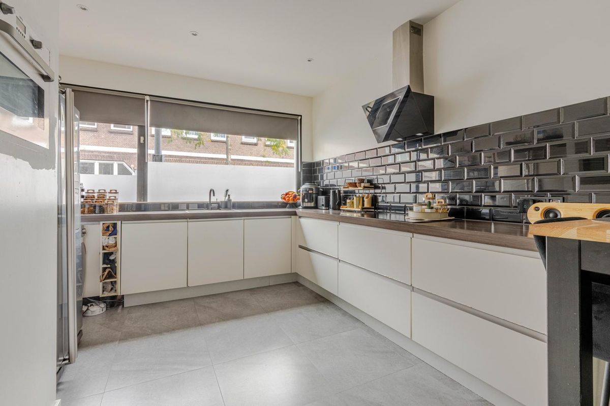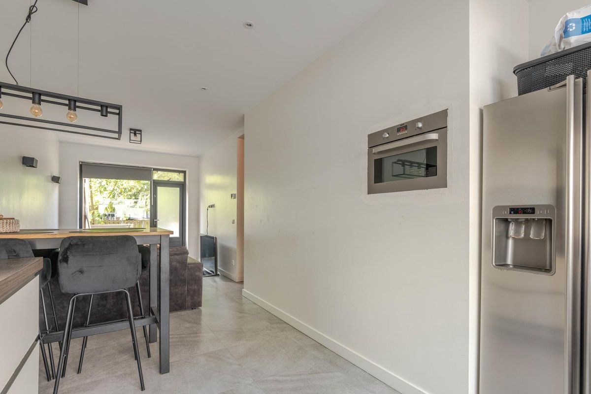 * Moderne hoek-inbouwkeuken voorzien van alle benodigde inbouwapparatuur zoals een inductiekookplaat, afzuigkap, oven (in de wand verwerkt), (losse) koel-vriescombinatie en vaatwasser.