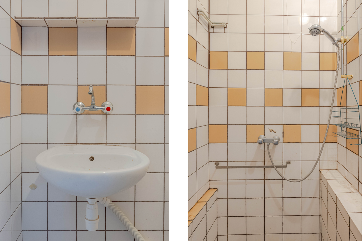 * Badkamer voorzien van inloopdouche, wastafel en geheel betegeld.