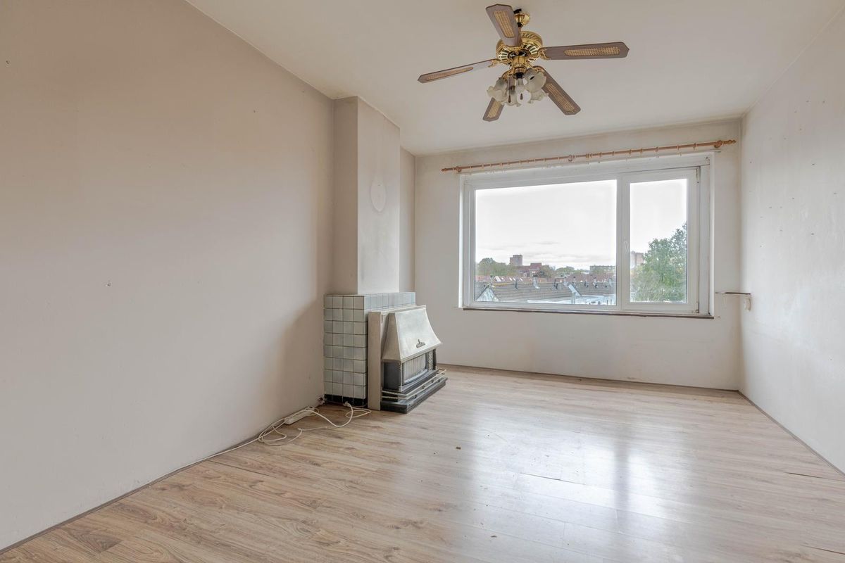 * Lichte woonkamer aan de voorzijde voorzien van laminaatvloer, gashaard, schuifdeur naar de achtergelegen slaapkamer en vrij uitzicht.