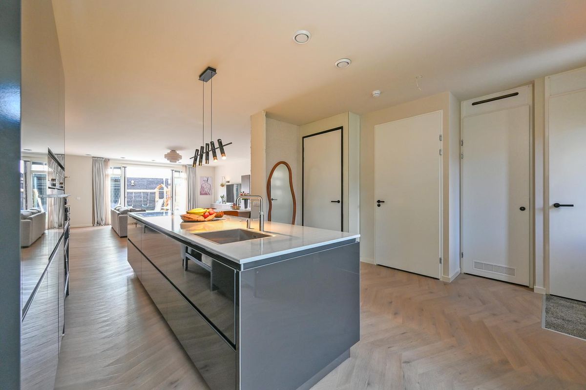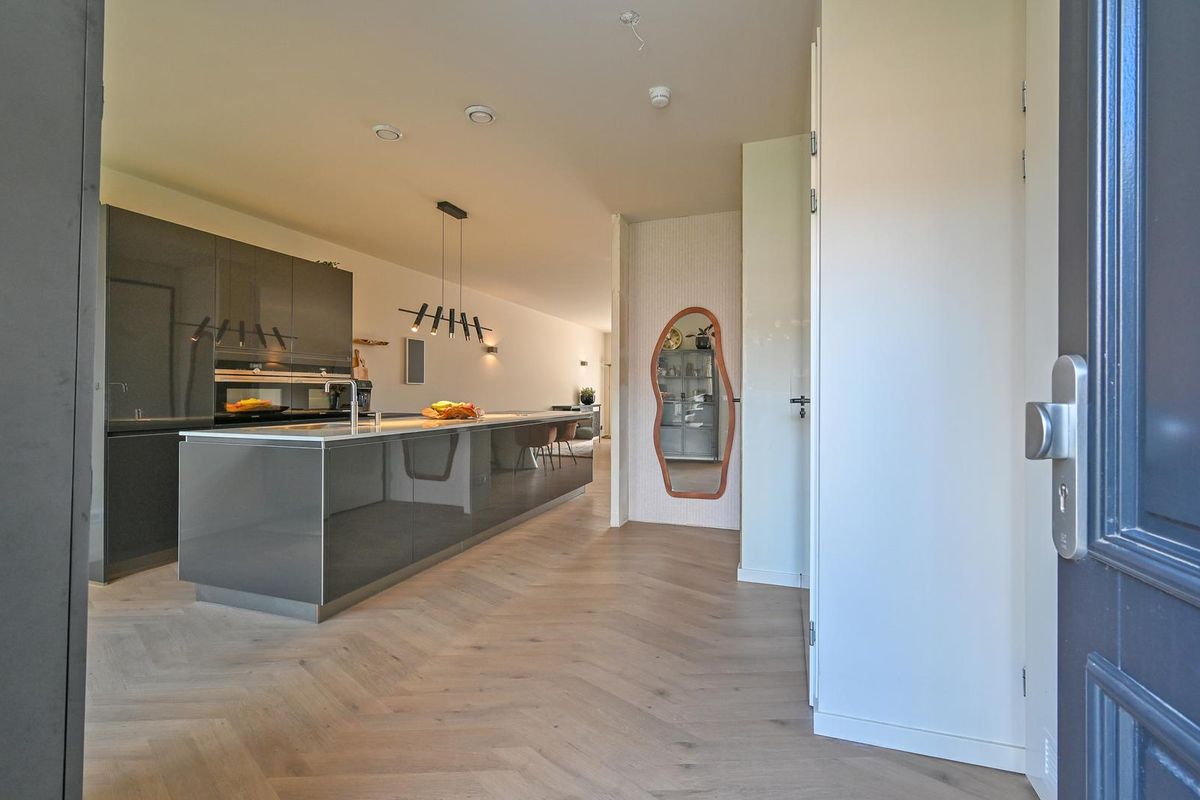 Via de voortuin betreedt u de woning, waar de aangepaste indeling direct verrast: het royale kookeiland vormt een echte blikvanger. De luxe open keuken met kookeiland vormt het hart van het huis en is uitgerust met hoogwaardige inbouwapparatuur. Koken wordt hier een plezier, terwijl u in contact blijft met familie of gasten in de eetkamer of living. De ideale plek voor lange avonden aan tafel.