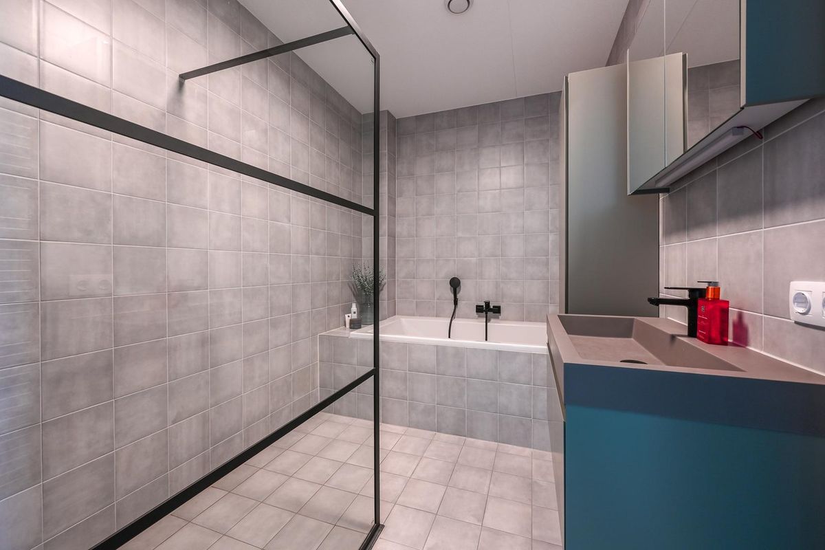 De volledig betegelde badkamer is een oase van comfort. Hier vindt u een heerlijk ligbad, een royale inloopdouche met regen- en handdouche, een stijlvol wastafelmeubel en een handdoekenradiator. Aan de voorzijde bevindt zich de sfeervolle masterbedroom, een plek om volledig tot rust te komen. De openslaande deuren naar het aangrenzende balkon zorgen voor een prachtige lichtinval en bieden een fantastisch uitzicht over de brede groenstrook aan de voorzijde.