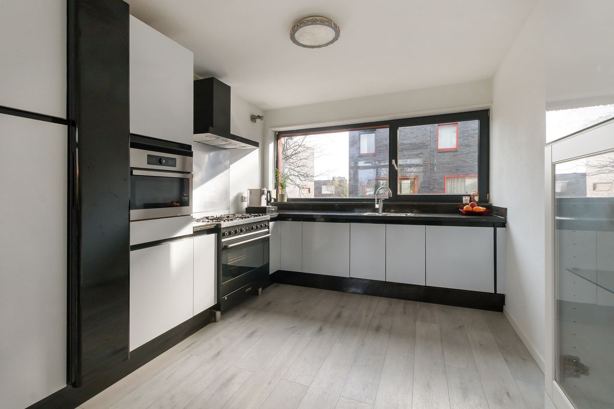 Onbegrensde mogelijkheden! Deze moderne 6 kamer woning (type 2-onder-1 kap) met inpandige garage kan op verschillende manier gebruikt worden. Doordat de begane grond is voorzien van een tweede badkamer met toilet en extra kamer is deze ideaal te gebruiken als kantoor of separate woonverdieping. De woonkamer met open keuken op de eerste verdieping is voorzien van een vide; dit zorgt voor veel lichtopbrengst. Op de derde en vierde verdieping zijn er nog 4 slaapkamers, een extra badkamer en het dakterras. In 2025 zijn er zonnepanelen geplaatst.