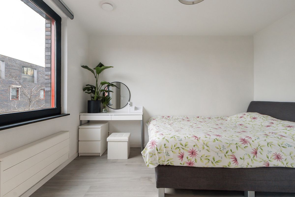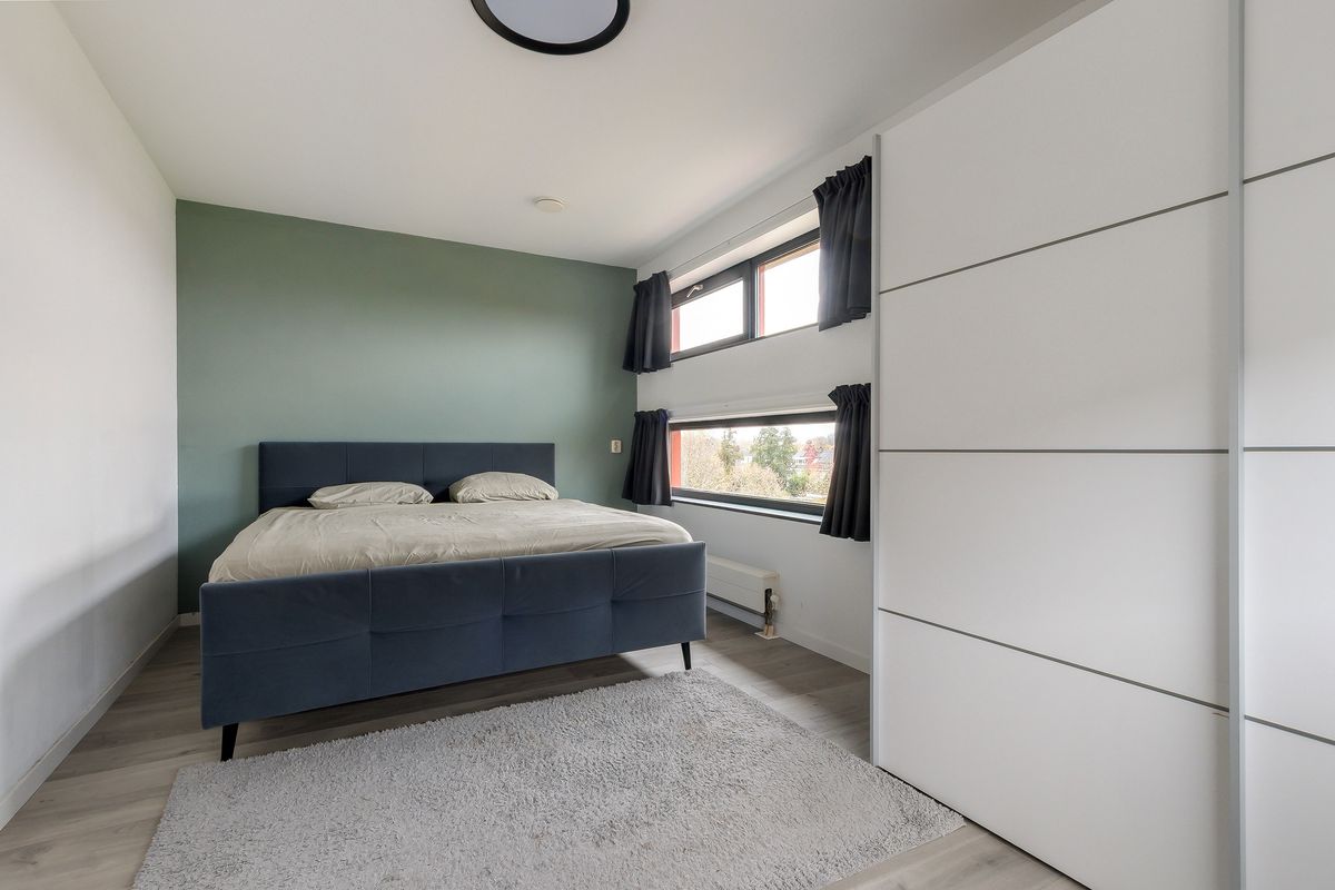 Slaapkamer 5 biedt veel licht en ruimte en sluit direct aan op het dakterras. De moderne shutter-raamafwerking blijft achter.