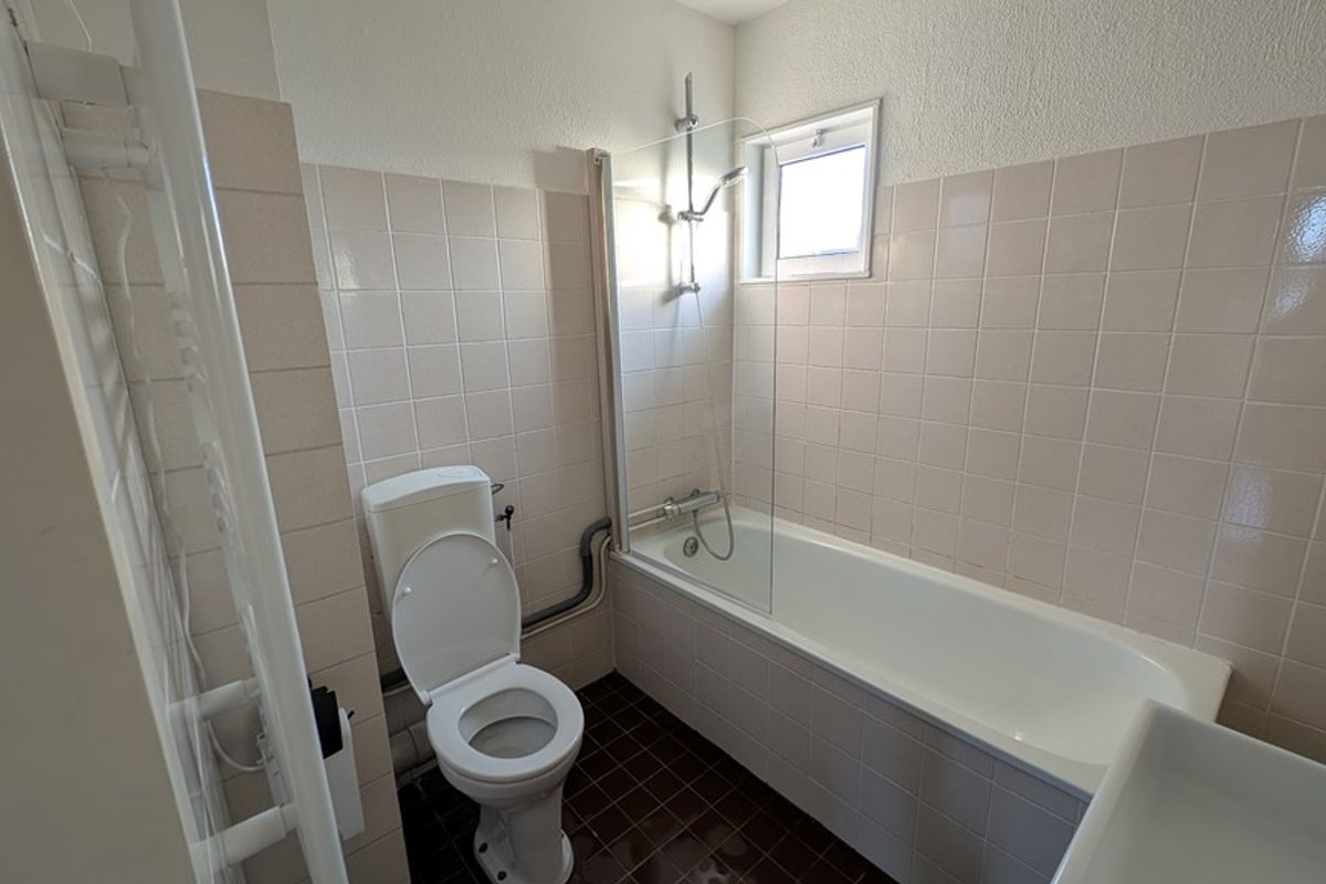 Eerste verdieping: drie slaapkamers, badkamer met bad en douche, wastafel en toilet.