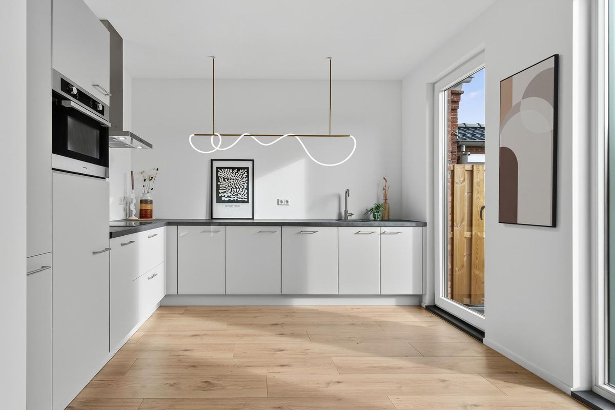 - Kunststof kozijnen met HR++ beglazing zorgen voor extra isolatie en weinig onderhoud.