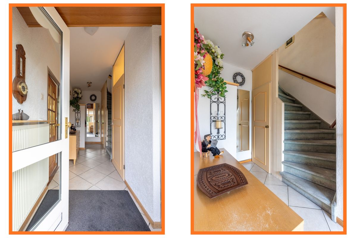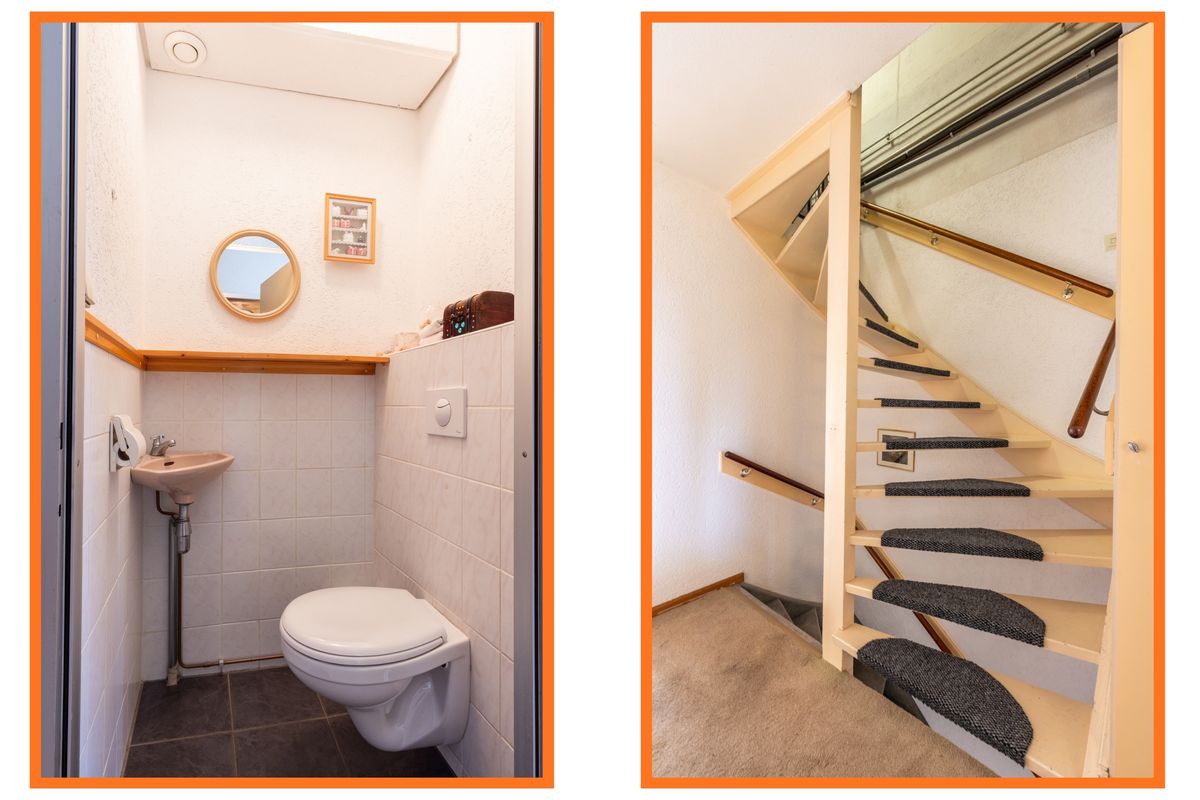 Via de entree komt u in de hal, waar zich het toilet bevindt, voorzien van een wandcloset en fonteintje. Verder vindt u hier de trapkast – ideaal voor extra bergruimte – en de trapopgang naar de eerste verdieping.