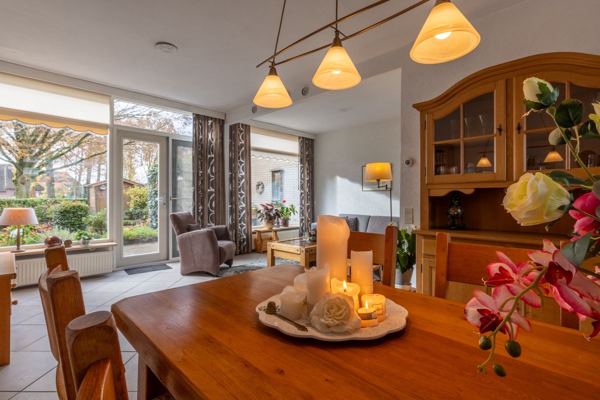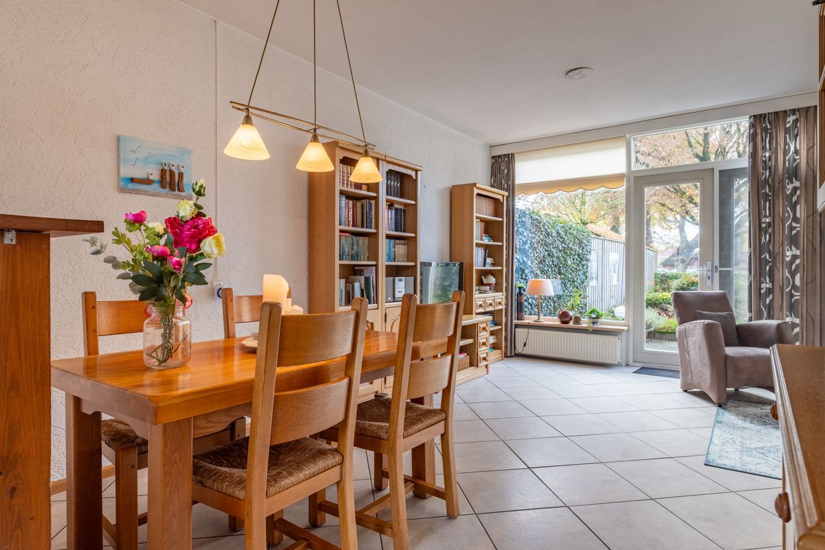 De ruime L-vormige woonkamer vormt het hart van de woning. Dankzij de grote ramen en de dubbele openslaande deuren richting de achtertuin is het hier altijd licht en sfeervol. De woonkamer biedt voldoende ruimte voor een royale zithoek én een grote eettafel, zodat u gezellig kunt tafelen met familie en vrienden.