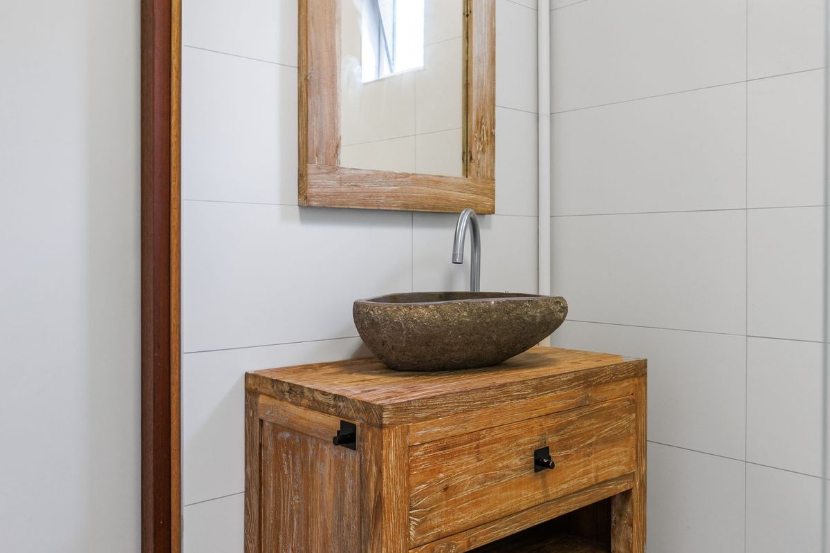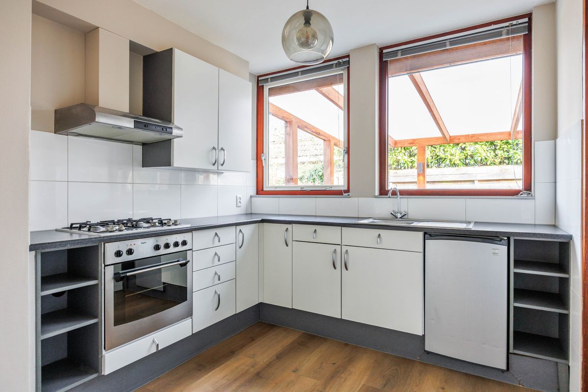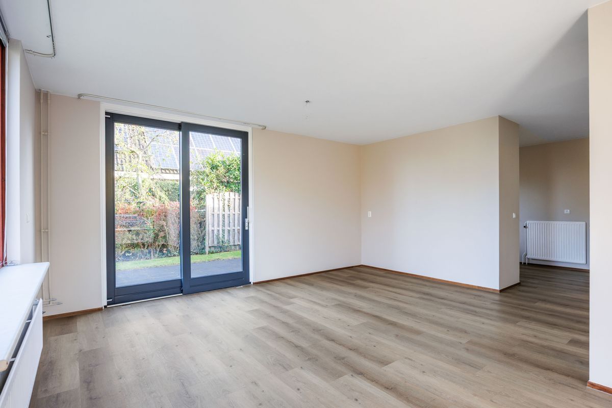 Entree/hal, toilet, woonkamer met nieuwe schuifpui, half-open keuken, moderne badkamer, slaapkamer, bijkeuken met toegang tot garage. Voorzien van PVC-vloer.