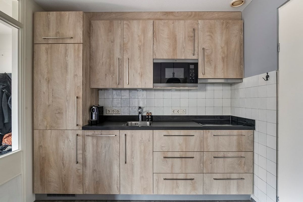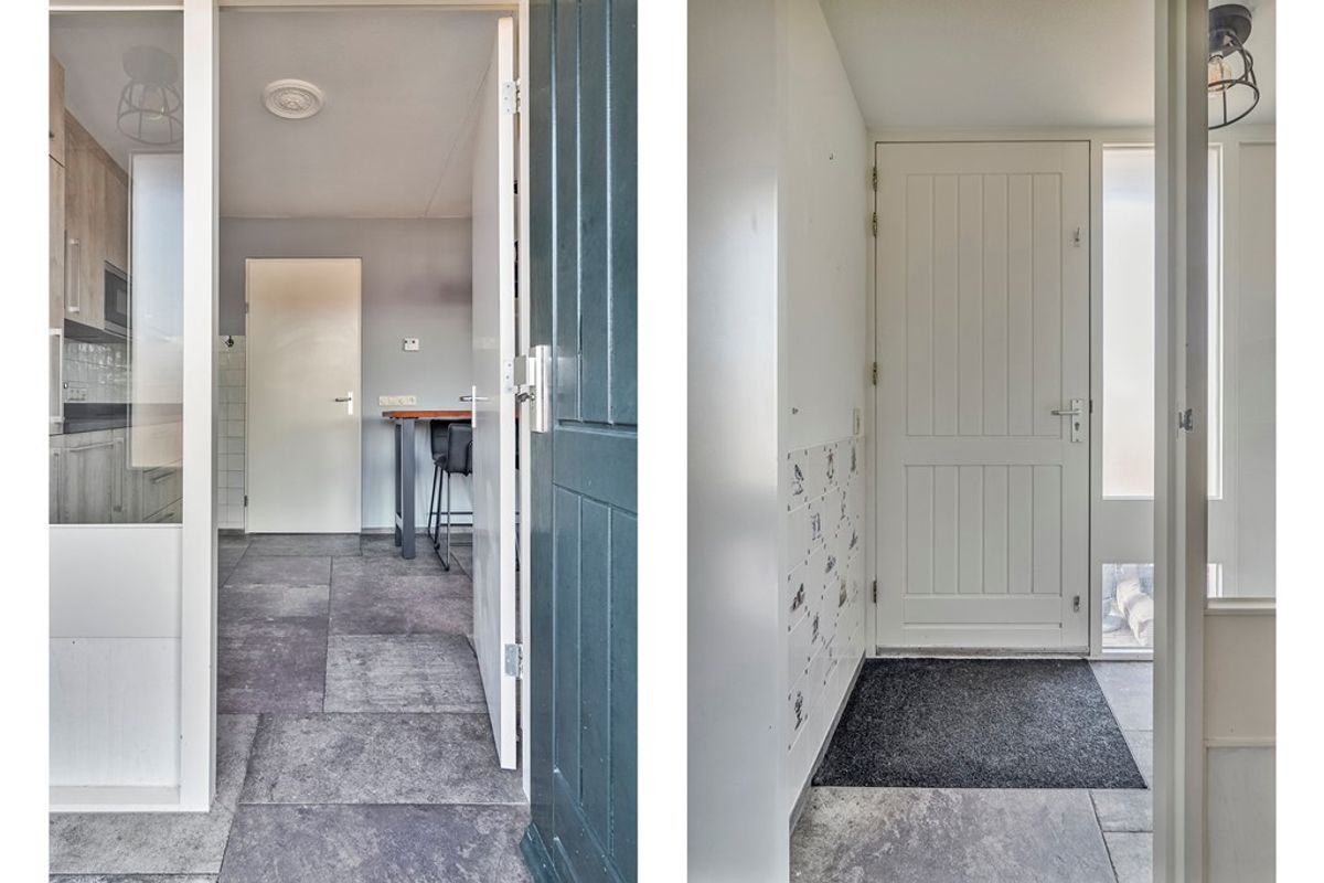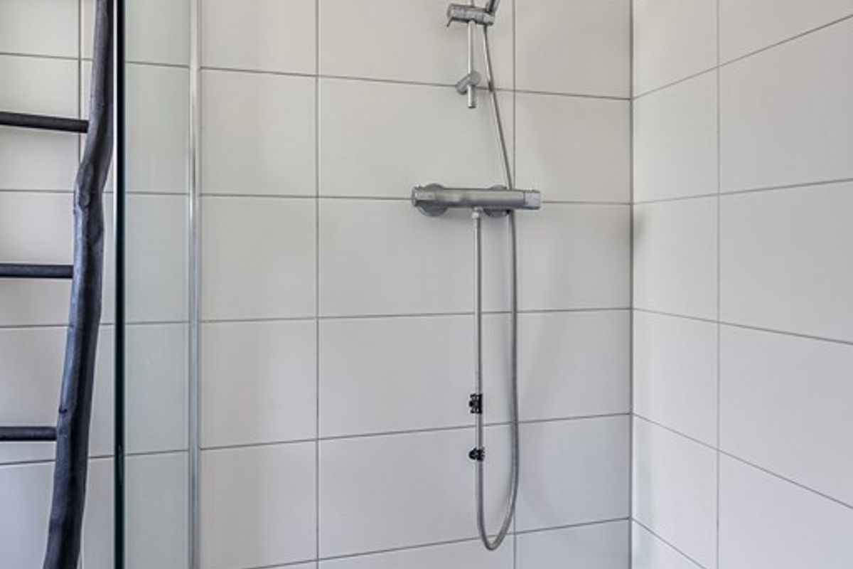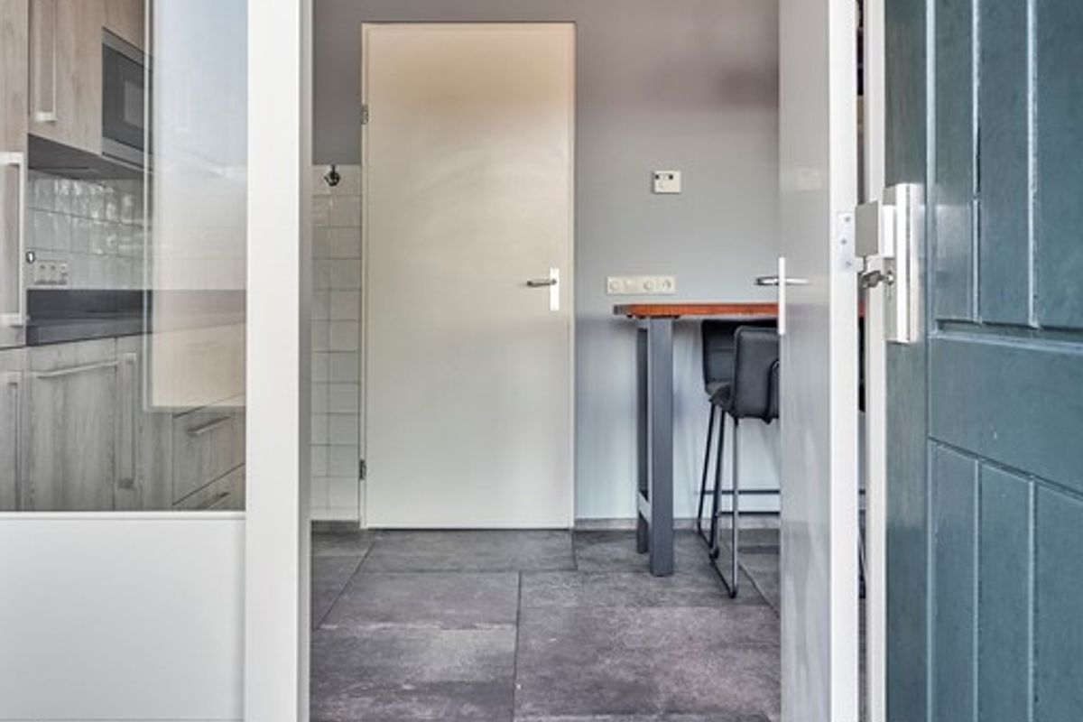 Entree, toegang tot de woonkamer met open keukenruimte. Keukenruimte v.v. moderne keuken in wandopstelling en v.v. inbouwapparatuur o.a. vaatwasser, koel-vriescombinatie, inductie kookplaat met afzuigkap, magnetron. Achter portaal met meterkast, technische ruimte met hr cv ketelopstelling (Nefit 2017), toiletruimte met hangend toilet en fontein, deur naar het de achtertuin met terras. Vanuit de woonkamer is er toegang tot de royale ouderslaapkamer met badkamer ensuite, badkamer uitgerust met inloopdouche, wastafelmeubel, wasmachine-aansluiting, mechanische ventilatie.