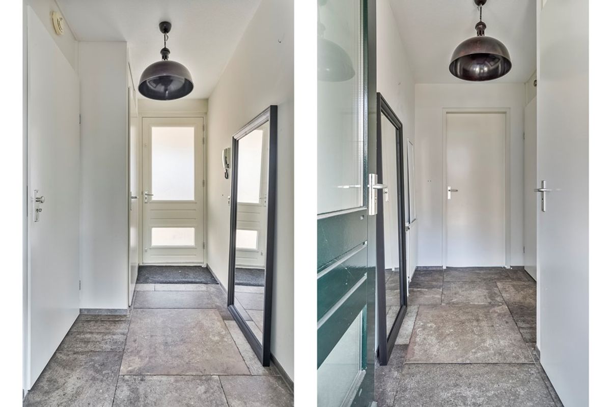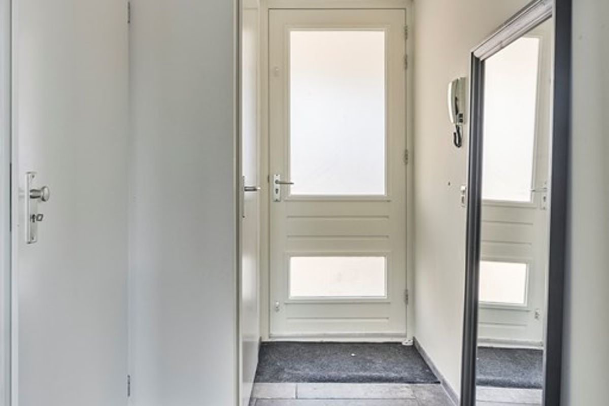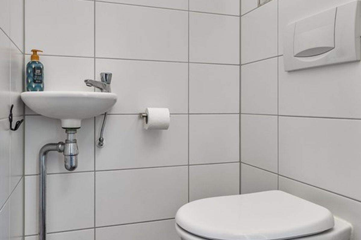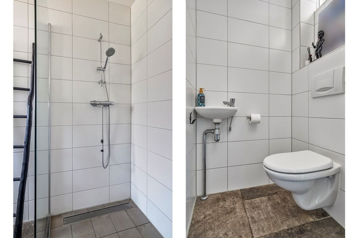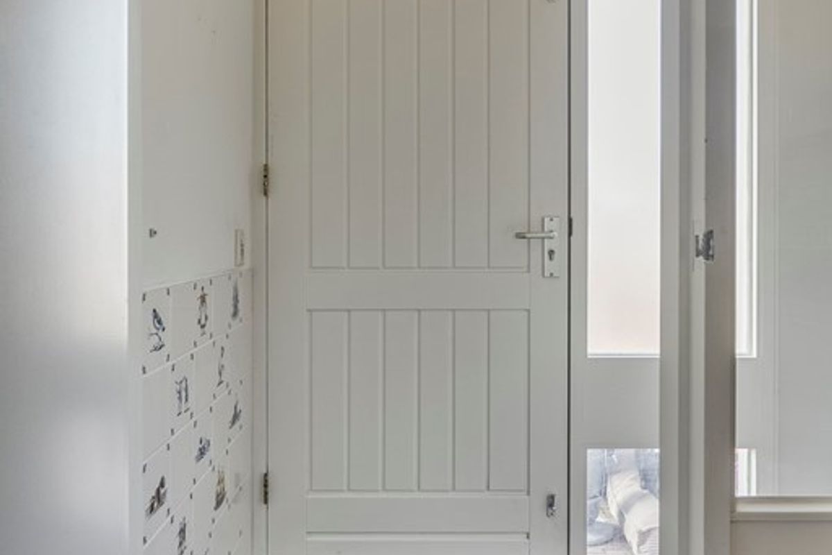 Entree, toegang tot de woonkamer met open keukenruimte. Keukenruimte v.v. moderne keuken in wandopstelling en v.v. inbouwapparatuur o.a. vaatwasser, koel-vriescombinatie, inductie kookplaat met afzuigkap, magnetron. Achter portaal met meterkast, technische ruimte met hr cv ketelopstelling (Nefit 2017), toiletruimte met hangend toilet en fontein, deur naar het de achtertuin met terras. Vanuit de woonkamer is er toegang tot de royale ouderslaapkamer met badkamer ensuite, badkamer uitgerust met inloopdouche, wastafelmeubel, wasmachine-aansluiting, mechanische ventilatie.