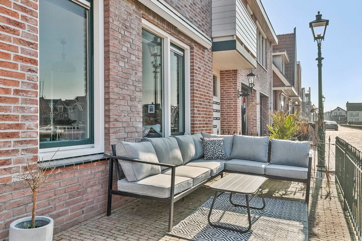 Voor-en achtertuin, bezonning op het westen en het oosten, heerlijk genieten van de avondzon met uitzicht op de nieuwe haven.