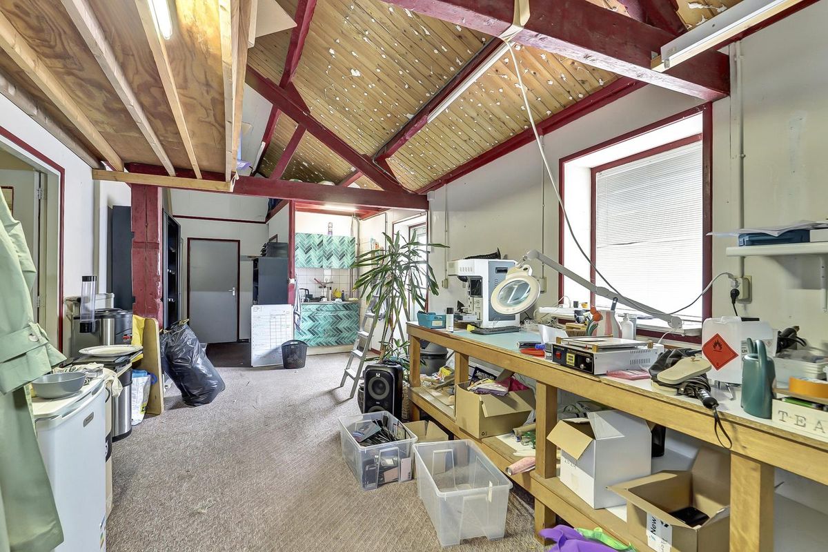 Via de entree aan de voorzijde bereikt u de winkelruimte, momenteel verhuurd en voorzien van achtergelegen werkplaats, opslagruimte en toegang tot het buitenterrein.