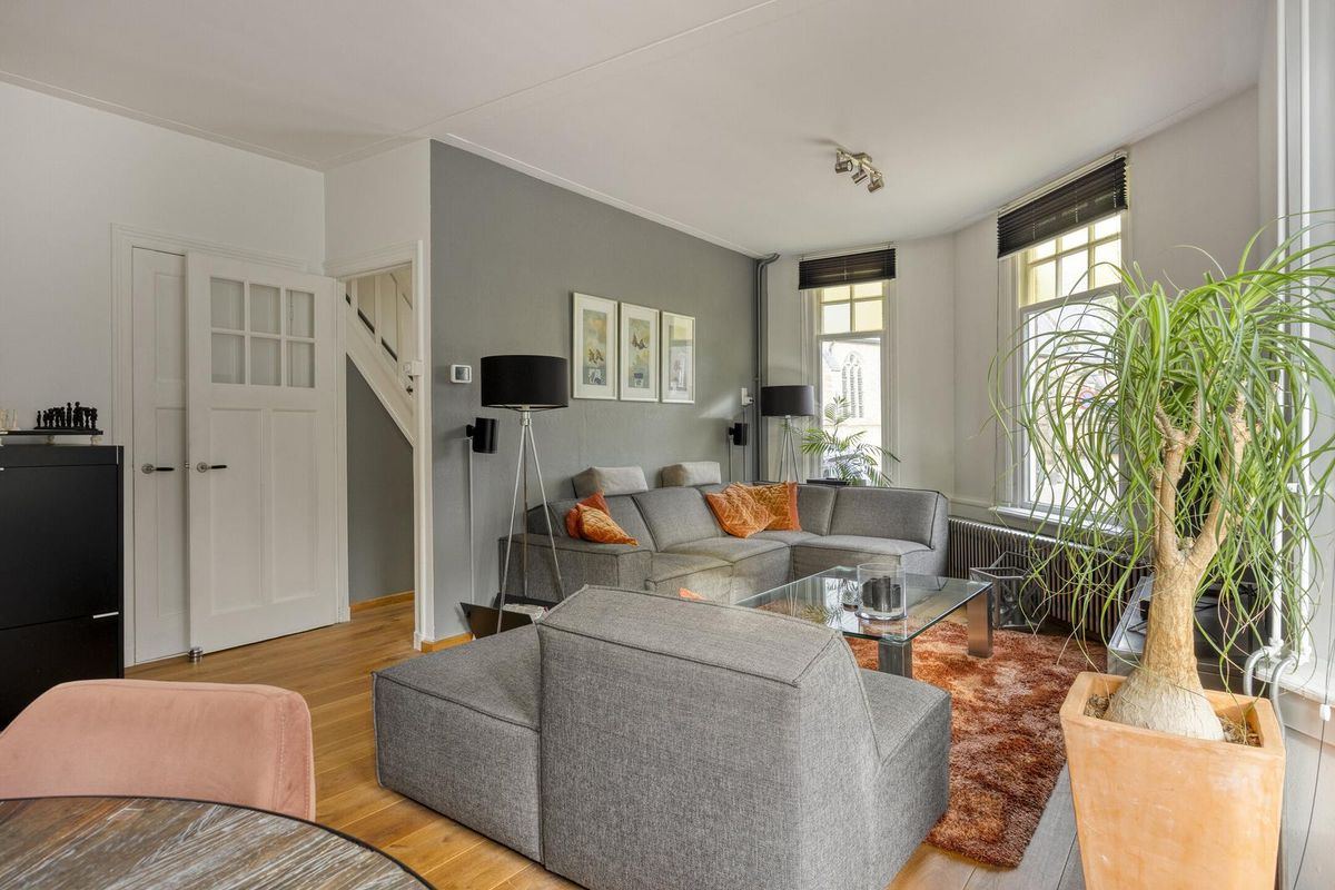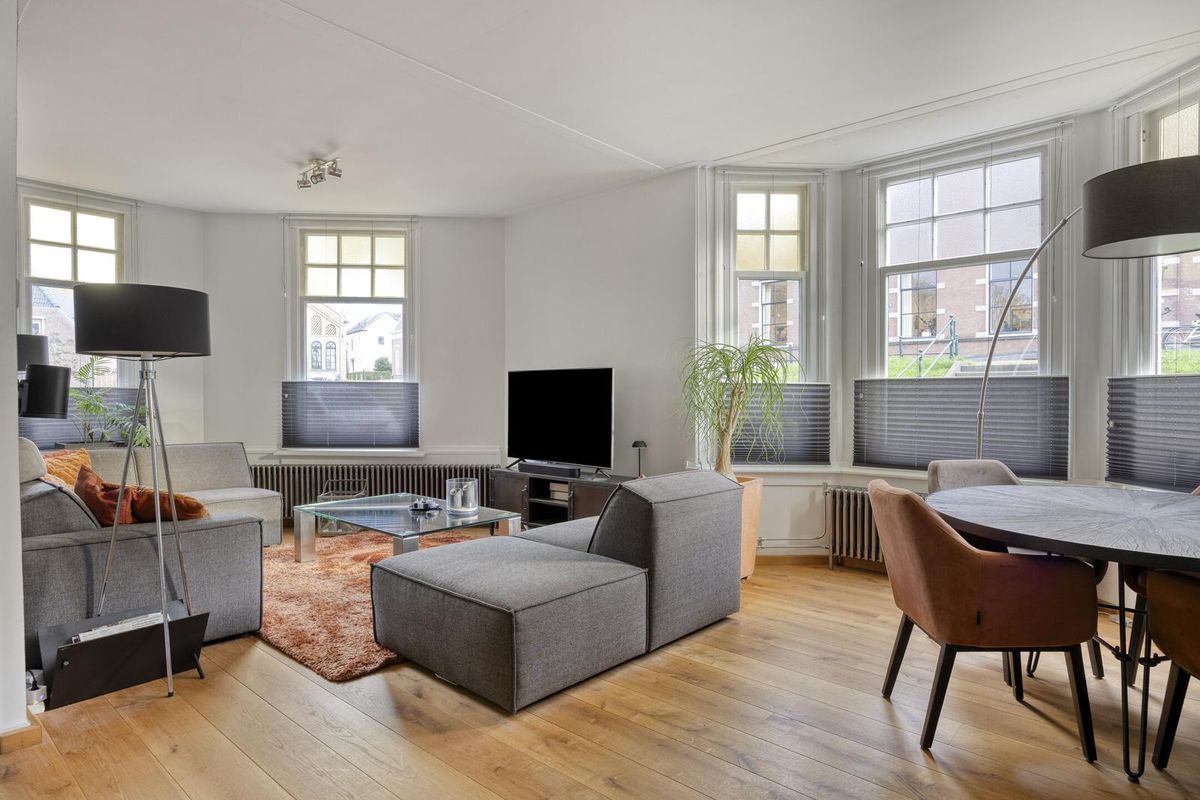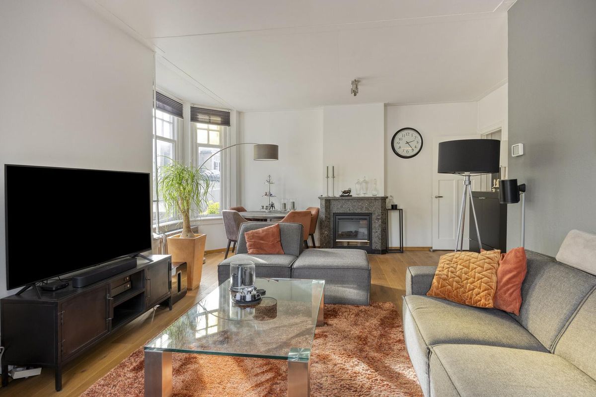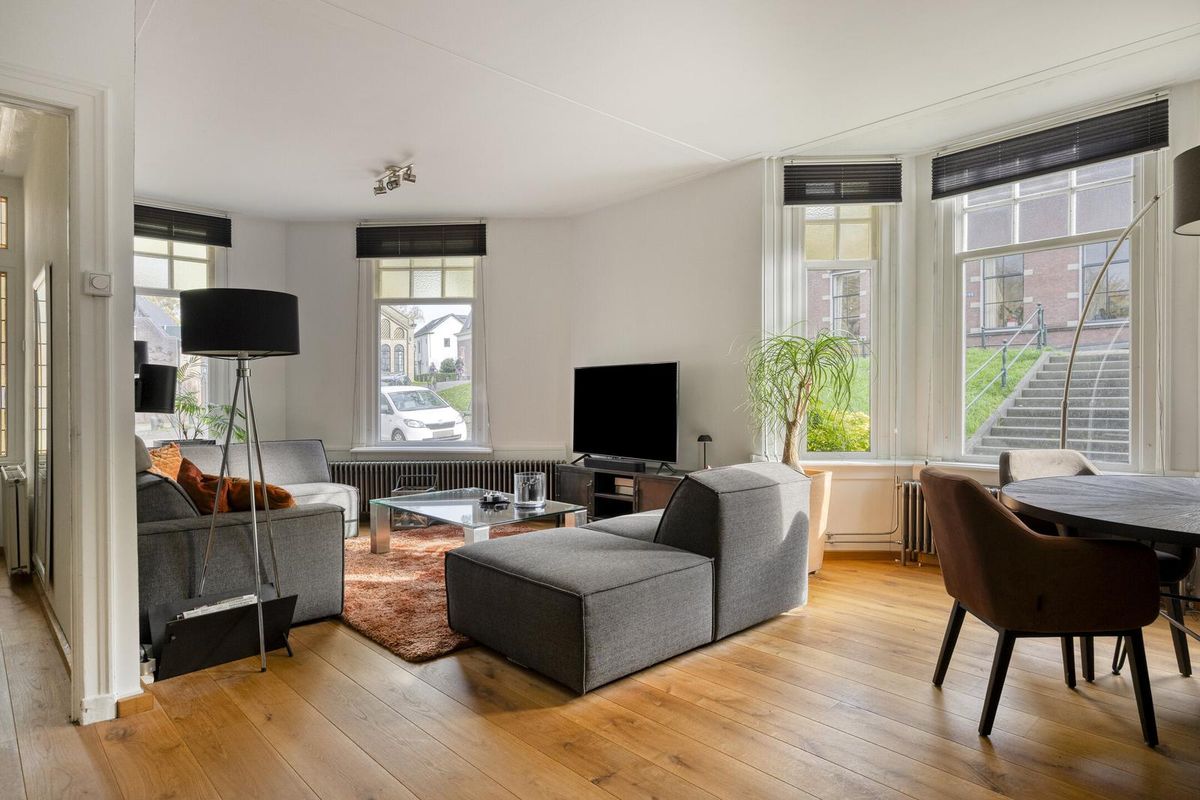 * Gezellige woonkamer met veel lichtinval en verder voorzien van een houten vloer en een elektrische led kachel;