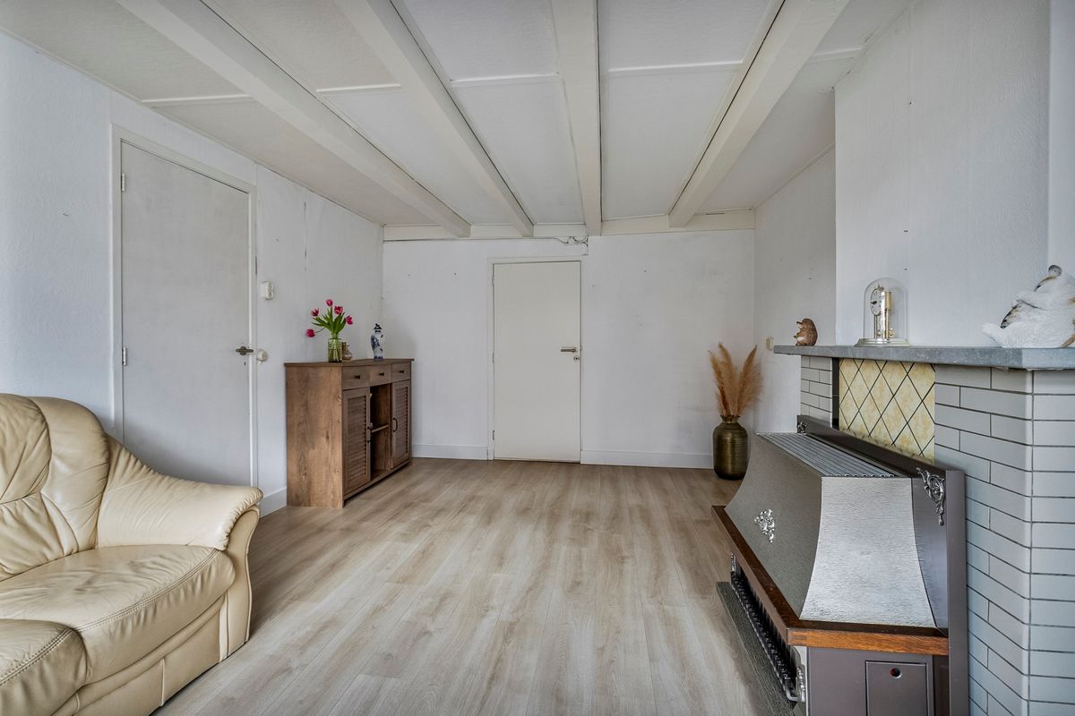 U komt de woning binnen via de lange hal, die toegang biedt tot alle vertrekken. De woonkamer bevindt zich aan de voorzijde van de woning en heeft een oppervlakte van ca. 18,5 m². In de woonkamer is een schouw met gaskachel aanwezig. Door de grote raampartij valt er veel daglicht naar binnen.
